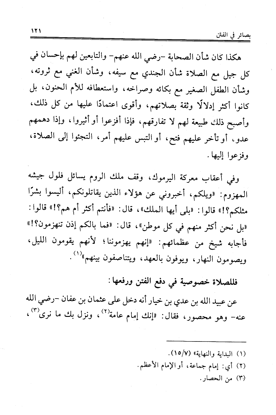 هكذا كان شأن الصحابة - رضي الله عنهم- والتابعين لهم بإحسان في كل جيل مع الصلاة شأن الجندي مع سيفه، وشأن الغني مع ثروته، وشأن الطفل الصغير مع بكائه وصراخه، واستعطافه للأم الحنون، بل كانوا أكثر إدلالًا وثقة بصلاتهم، وأقوى اعتمادًا عليها من كل ذلك، وأصبح ذلك طبيعة لهم لا تفارقهم، فإذا أفزعوا أو أثيروا، وإذا دهمهم عدو، أو تأخر عليهم فتح، أو التبس عليهم أمر، التجئوا إلى الصلاة، وفزعوا إليها.