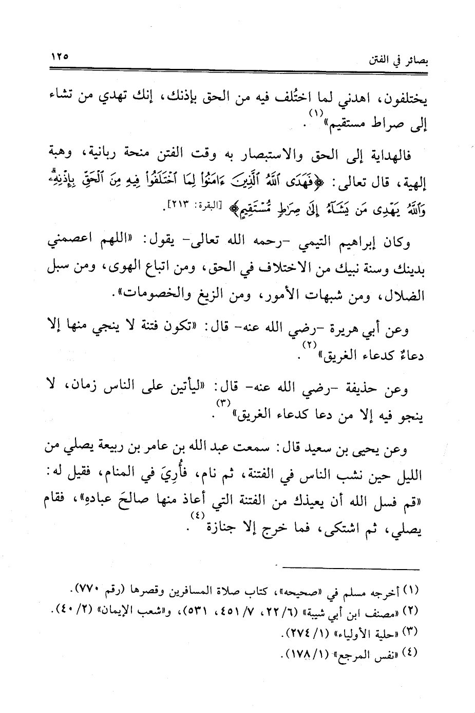 فالهداية إلى الحق والاستبصار به وقت الفتن منحة ربانية، وهبة إلهية، قال تعالى: {فَهَدَى اللَّهُ الَّذِينَ آمَنُوا لِمَا اخْتَلَفُوا فِيهِ مِنَ الْحَقِّ بِإِذْنِهِ وَاللَّهُ يَهْدِي مَنْ يَشَاءُ إِلَى صِرَاطٍ مُسْتَقِيمٍ} [البقرة: 213].