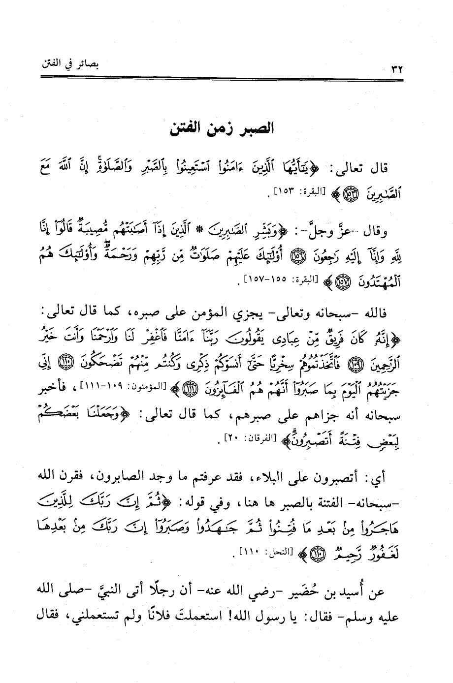وقال -عزَّ وجلَّ-: {وَبَشِّرِ الصَّابِرِينَ (155) الَّذِينَ إِذَا أَصَابَتْهُمْ مُصِيبَةٌ قَالُوا إِنَّا لِلَّهِ وَإِنَّا إِلَيْهِ رَاجِعُونَ (156) أُولَئِكَ عَلَيْهِمْ صَلَوَاتٌ مِنْ رَبِّهِمْ وَرَحْمَةٌ وَأُولَئِكَ هُمُ الْمُهْتَدُونَ (157)} [البقرة: 155 - 157].