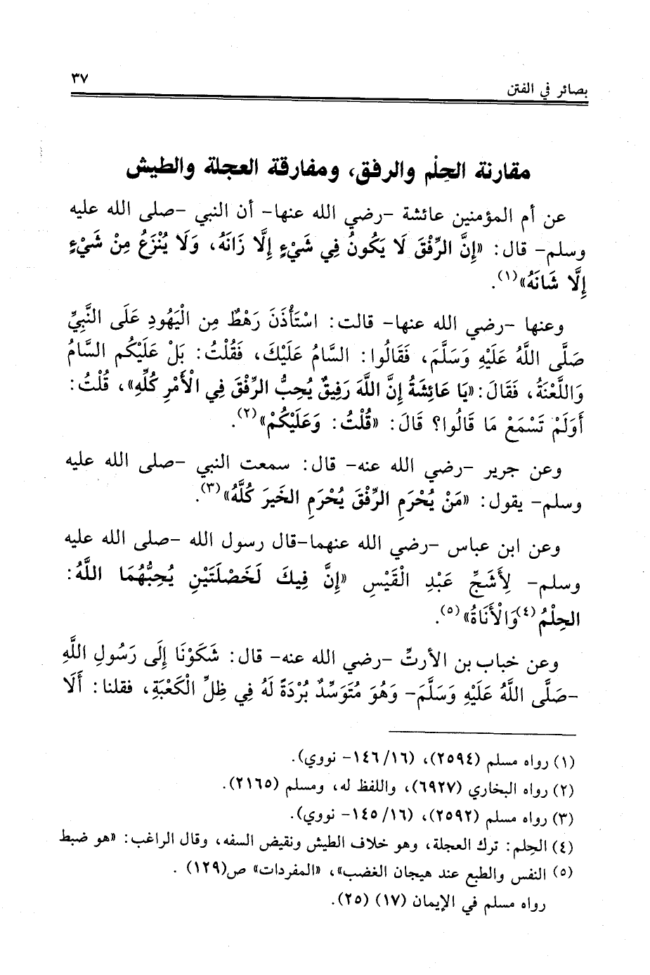 مقارنة الحِلْم والرفق، ومفارقة العجلة والطيش