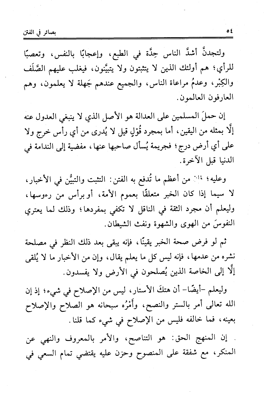 ثم لو فرض صحة الخبر يقينًا، فإنه يبقى بعد ذلك النظر في مصلحة نشره من عدمها، فإنه ليس كل ما يعلم يقال، وإن من الأخبار ما لا يُلقى إلاَّ إلى الخاصة الذين يُصلحون في الأرض ولا يفسدون.