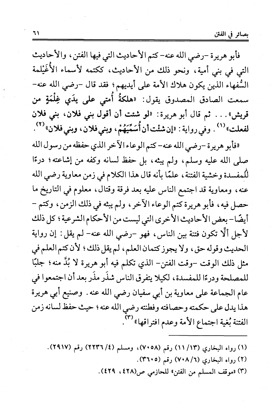 (¬3) "موقف المسلم من الفتن" للحازمي ص (428، 429).