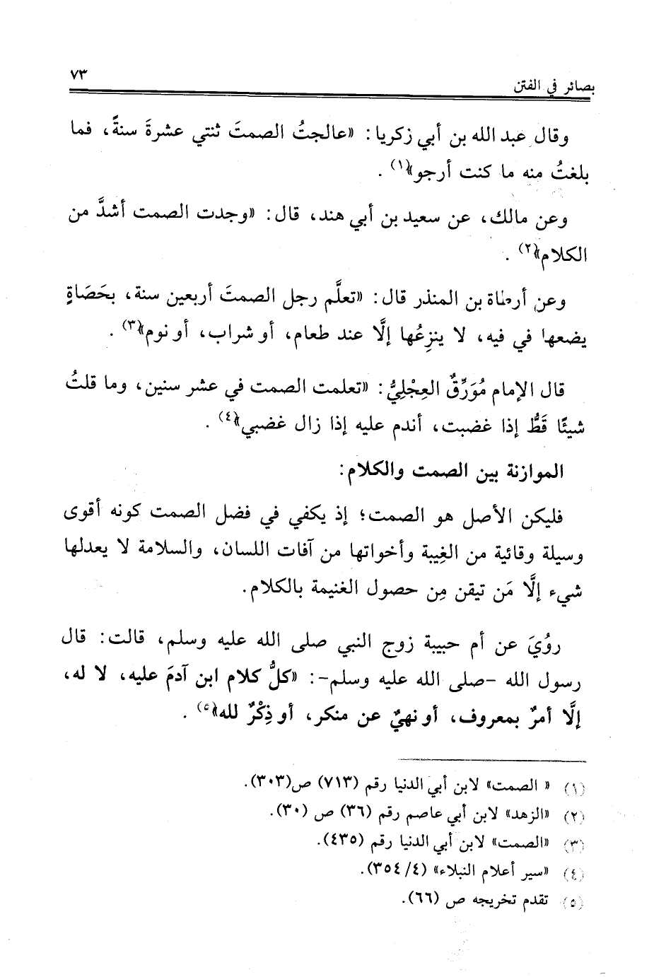 (¬1) "الصمت" لابن أبي الدنيا رقم (713) ص (303).