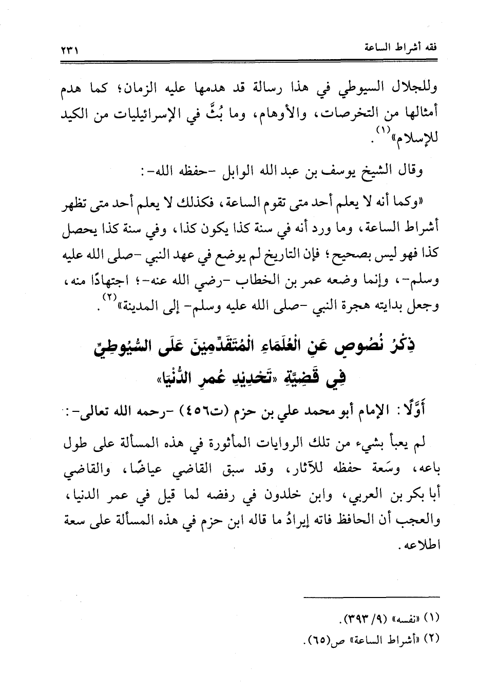 في قَضِيَّةِ "تَحْدِيْدِ عُمرِ الدُّنْيَا"