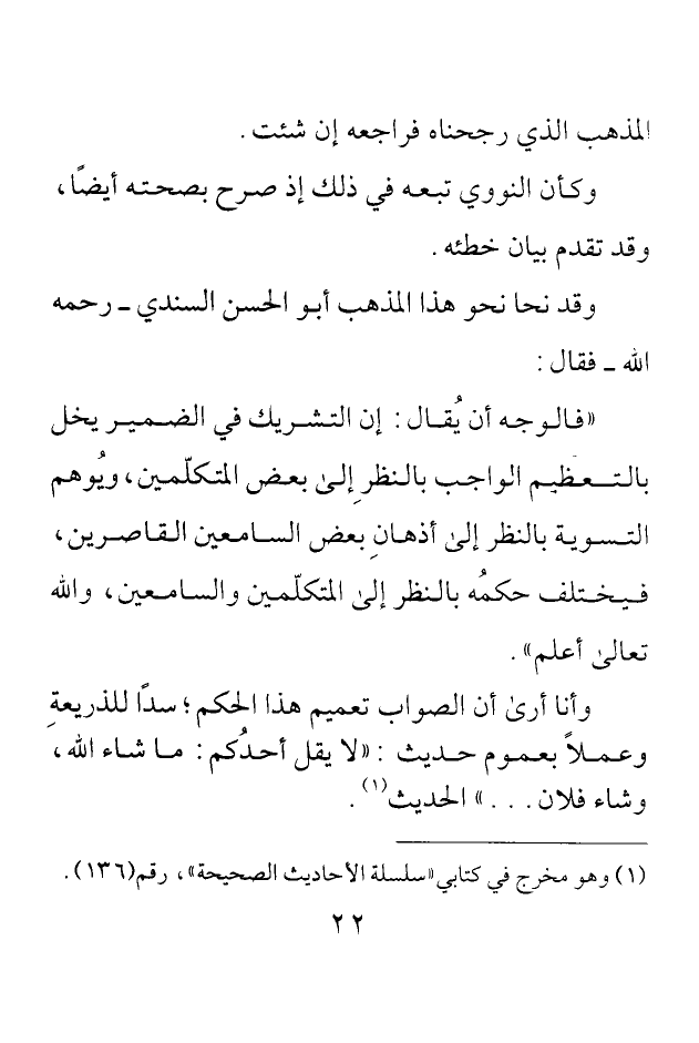وقد نحا نحو هذا المذهب أبو الحسن السندي رحمه الله فقال: