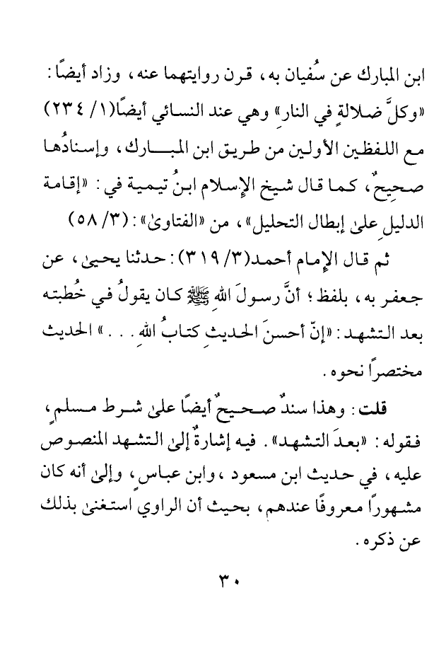 ابن المبارك عن سفيان به قرن روايتهما عنه وزاد أيضا: "وكل ضلالة في النار" وهي عند النسائي أيضا.