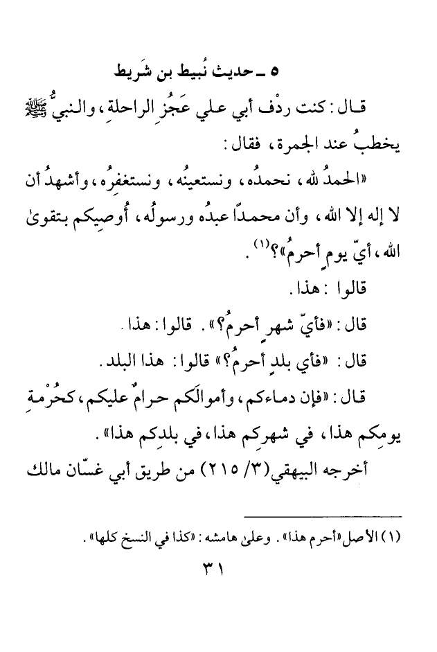 1 الأصل" أحرم هذا". وعلى هامشه: "كذا في النسخ كلها".