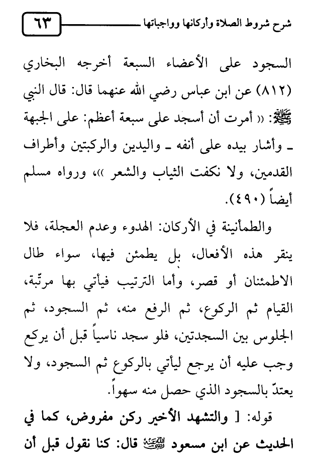 كتاب شرح شروط الصلاة وأركانها وواجباتها لشيخ الإسلام محمد بن عبد الوهاب