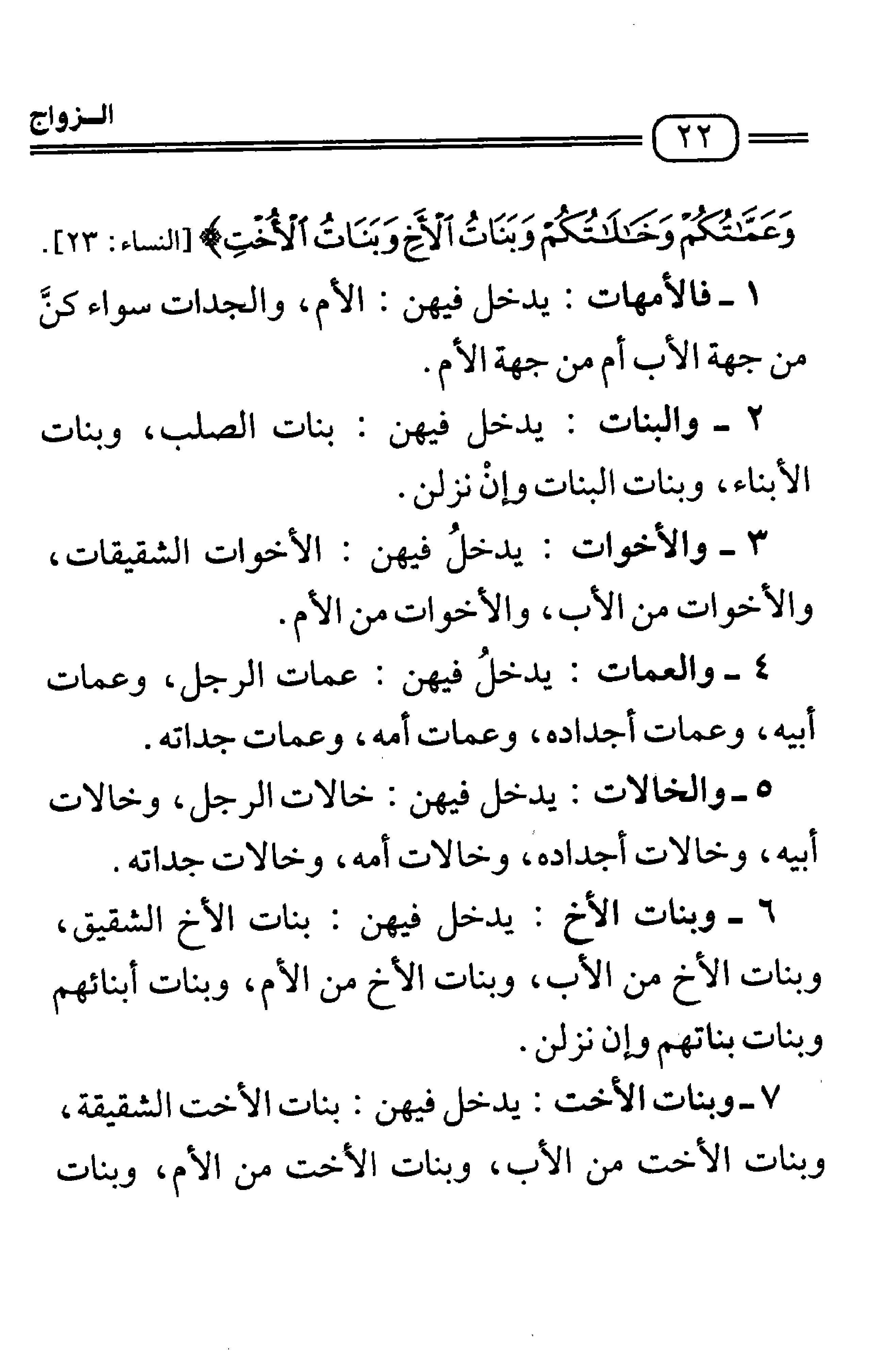 وَعَمَّاتُكُمْ وَخَالاتُكُمْ وَبَنَاتُ الْأَخِ وَبَنَاتُ الْأُخْتِ} [النساء: 23]