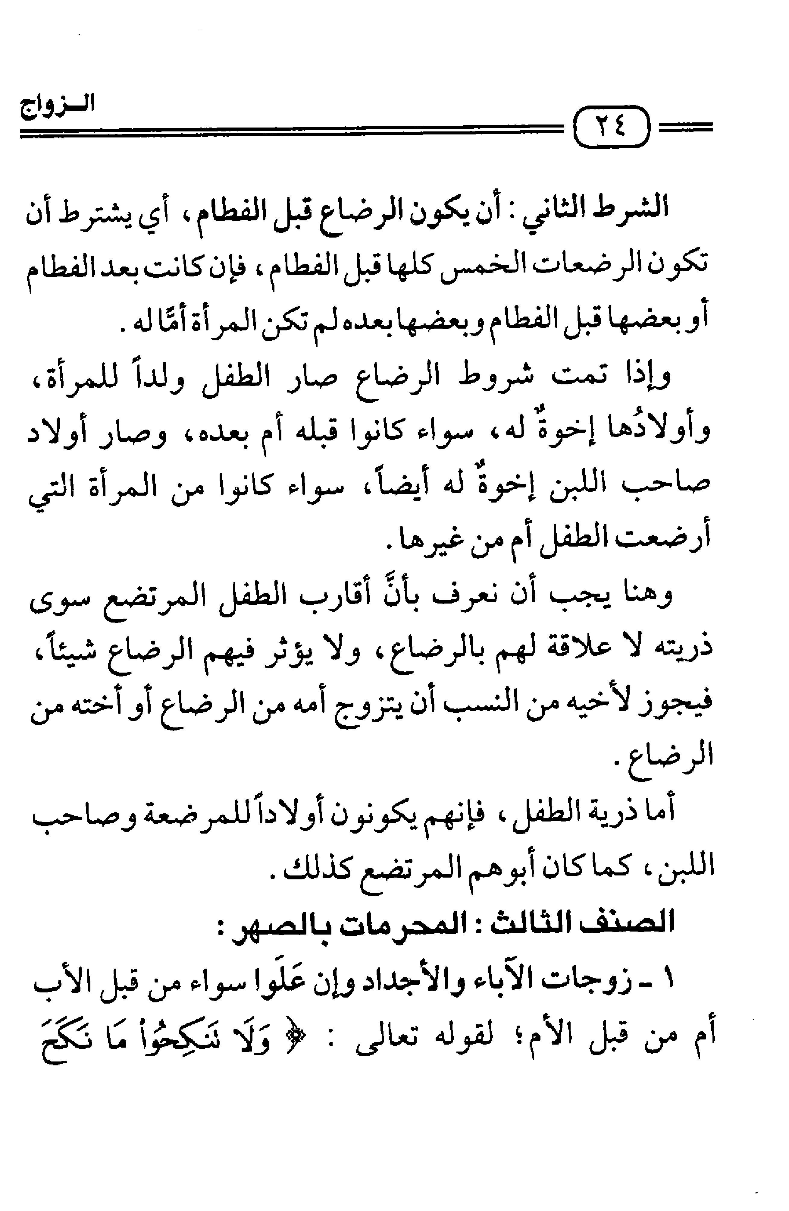 الشرط الثاني: أن يكون الرضاع قبل الفطام أي يشترط أن تكون الرضعات الخمس كلها قبل الفطام فان كانت بعد الفطام أو بعضها قبل الفطام وبعضها بعد الفطام لم تكن المرأة أما له.