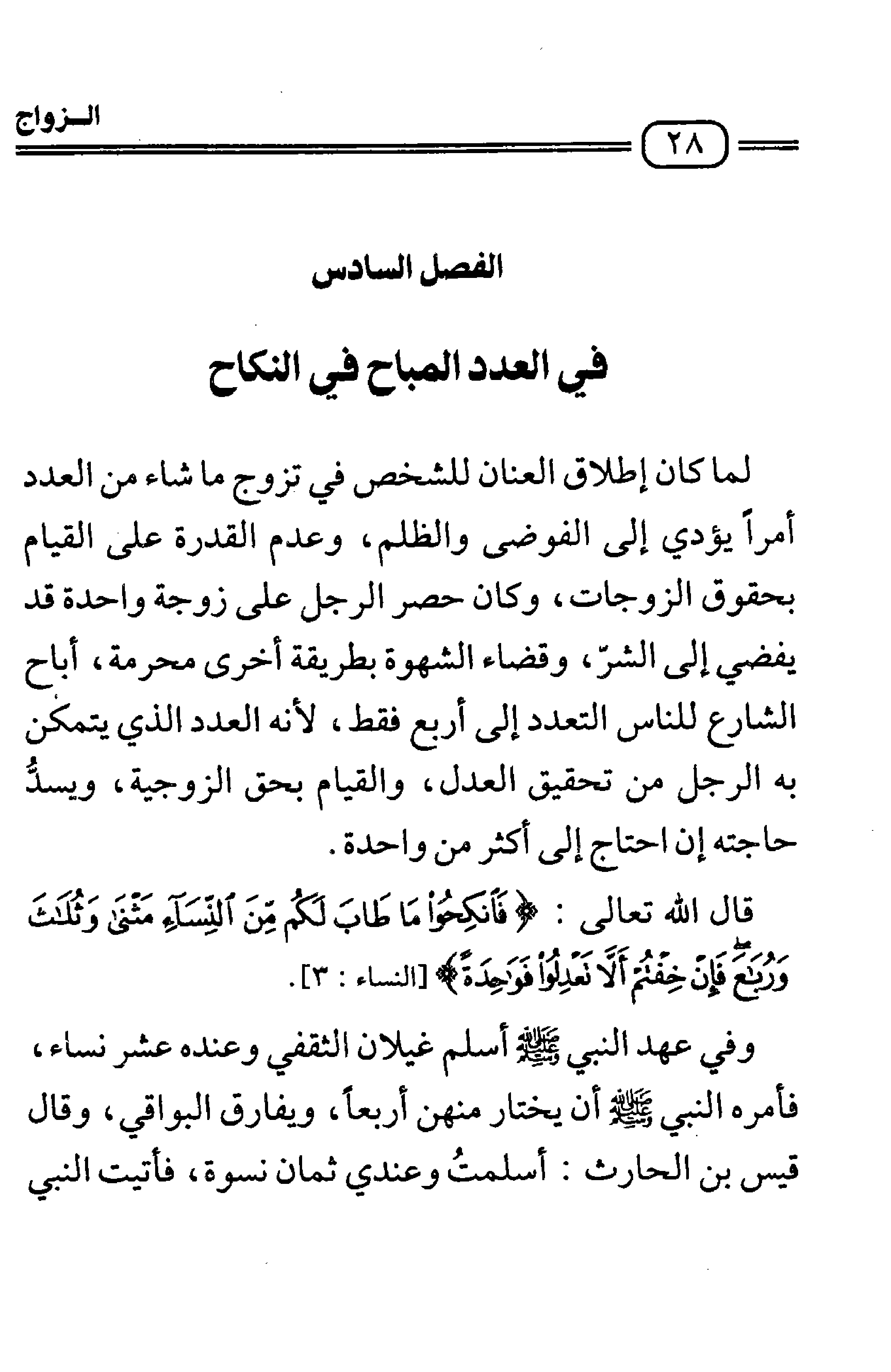 قال الله تعالى: {فَانْكِحُوا مَا طَابَ لَكُمْ مِنَ النِّسَاءِ مَثْنَى وَثُلاثَ وَرُبَاعَ فَإِنْ خِفْتُمْ أَلَّا تَعْدِلُوا فَوَاحِدَةً} [النساء: 3] .