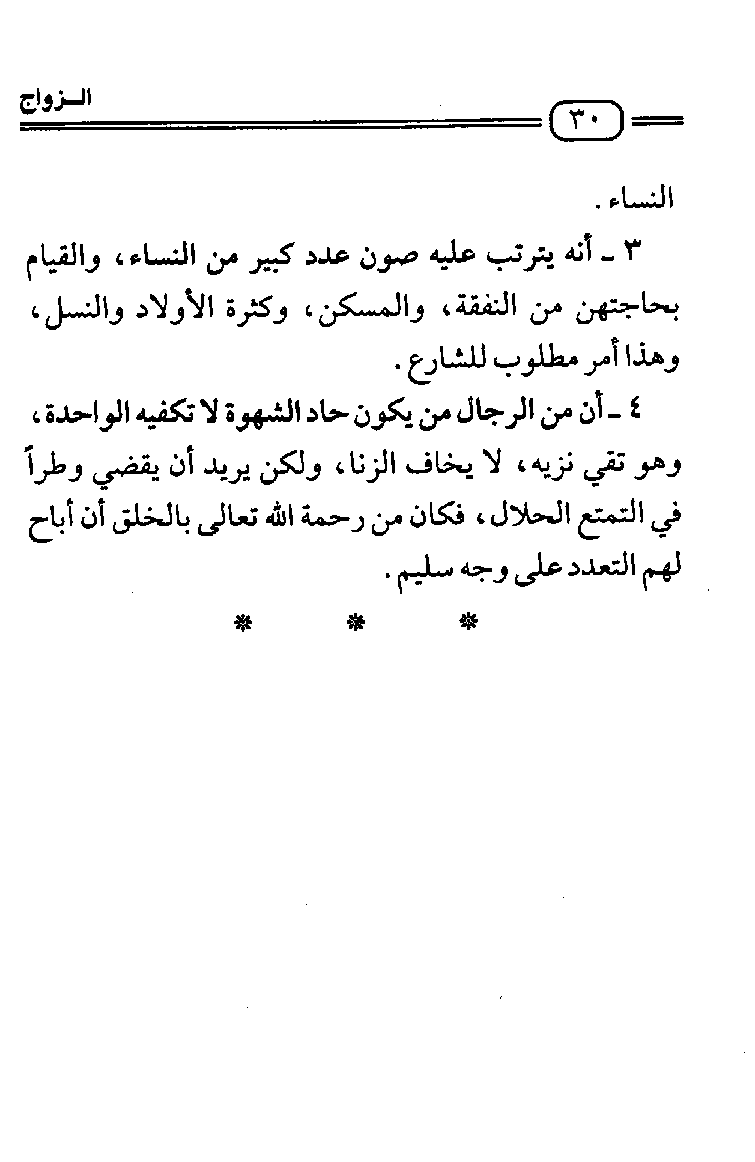 4- من الرجال من يكون حاد الشهوة لا تكفيه الواحدة وهي تقي نزيه ويخاف الزنا ولكن يريد أن يقضي وطرا في التمتع الحلال فكان من رحمة الله تعالى بالخلق أن أباح لهم التعدد على وجه سليم.