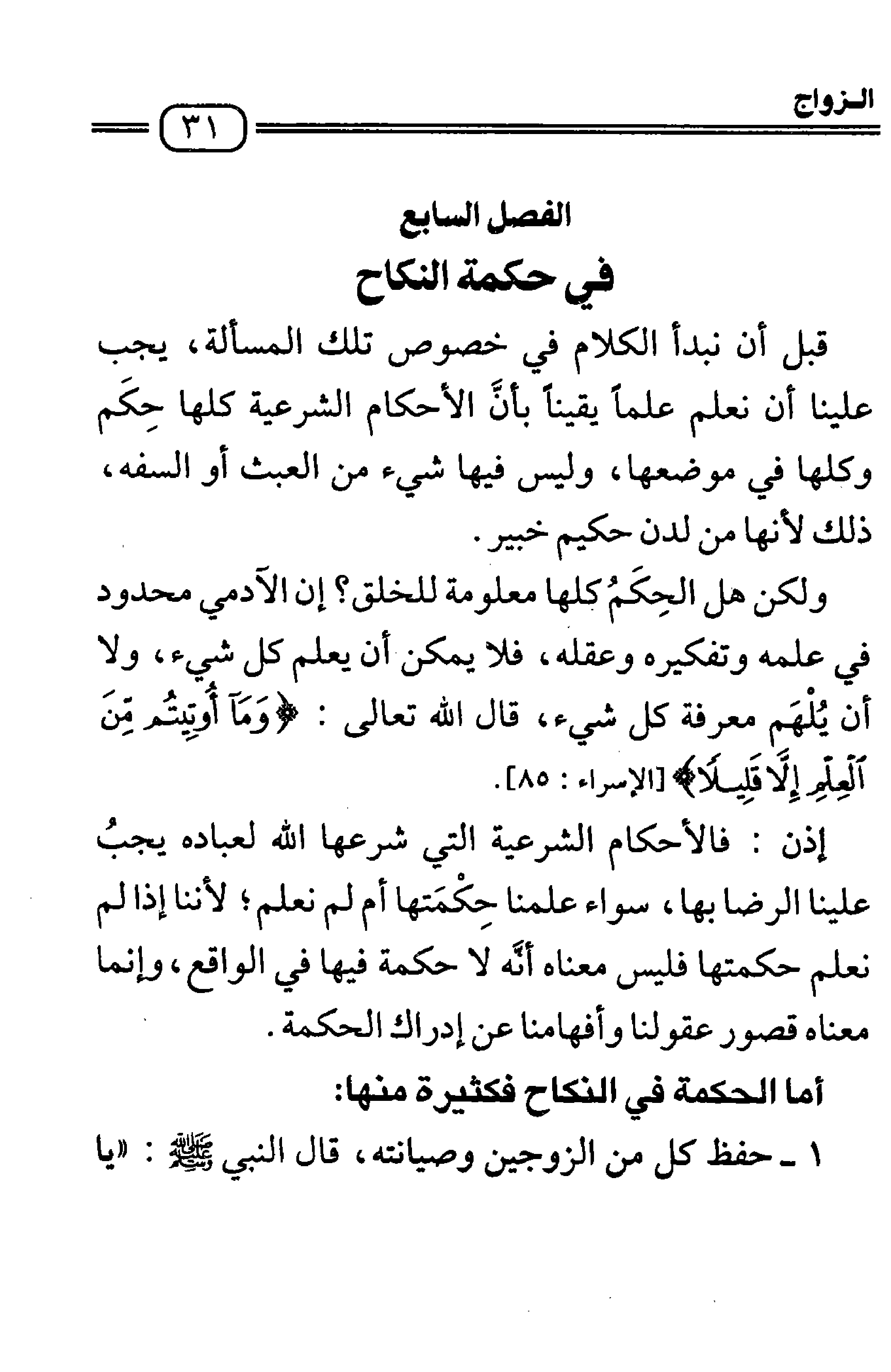 قبل أن نبدأ الكلام في خصوص تلك المسالة يجب علينا أن نعلم علما يقينا بان الأحكام الشرعية كلها حكم وكلها في موضعها وليس فيها شئ من العبث والسفه ذلك لأنها من لدن حكيم خبير.