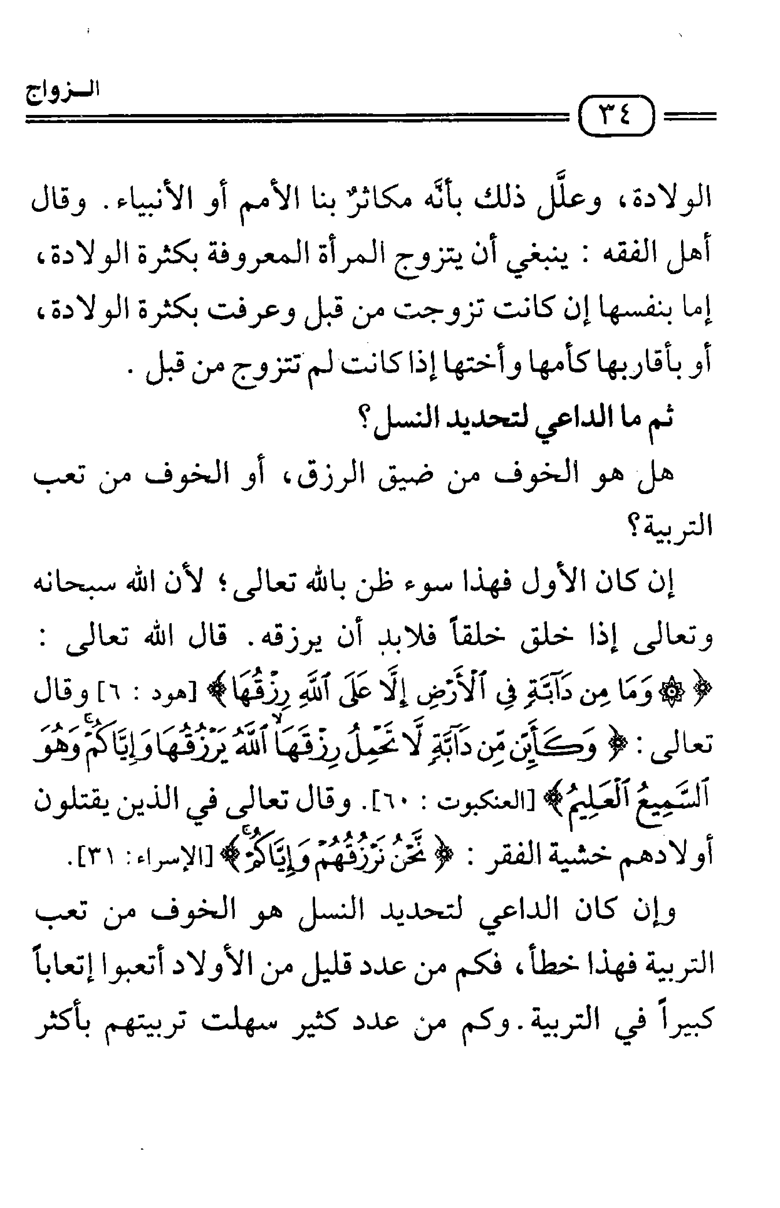 إن كان الأول فهذا سوء ظن بالله تعالى لان الله سبحانه وتعالى إذا خلق خلقا فلا بد أن يرزقه. قال الله تعالى: {وَمَا مِنْ دَابَّةٍ فِي الْأَرْضِ إِلَّا عَلَى اللَّهِ رِزْقُهَا} [هود-6] وقال تعالى: {وَكَأَيِّنْ مِنْ دَابَّةٍ لا تَحْمِلُ رِزْقَهَا اللَّهُ يَرْزُقُهَا وَإِيَّاكُمْ وَهُوَ السَّمِيعُ الْعَلِيمُ} "العنكبوت 60" وقال تعالى في الذين يقتلون أولادهم خشية الفقر: {نَحْنُ نَرْزُقُهُمْ وَإِيَّاكُمْ} [الإسراء 31] .