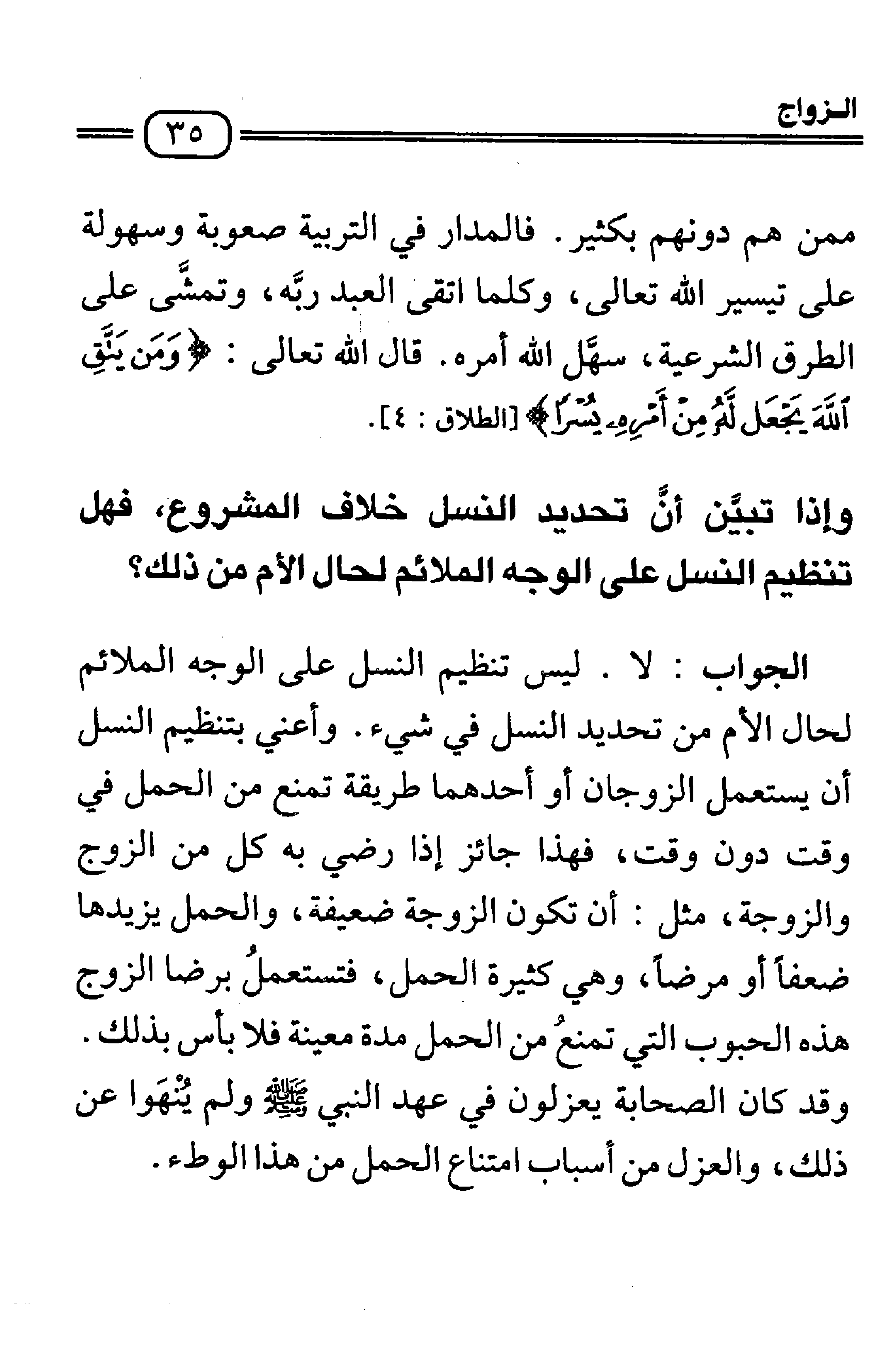 وإذا تبين أن تحديد النسل خلاف المشروع فهل تنظيم النسل على الوجه الملائم لحال الأم من ذلك؟