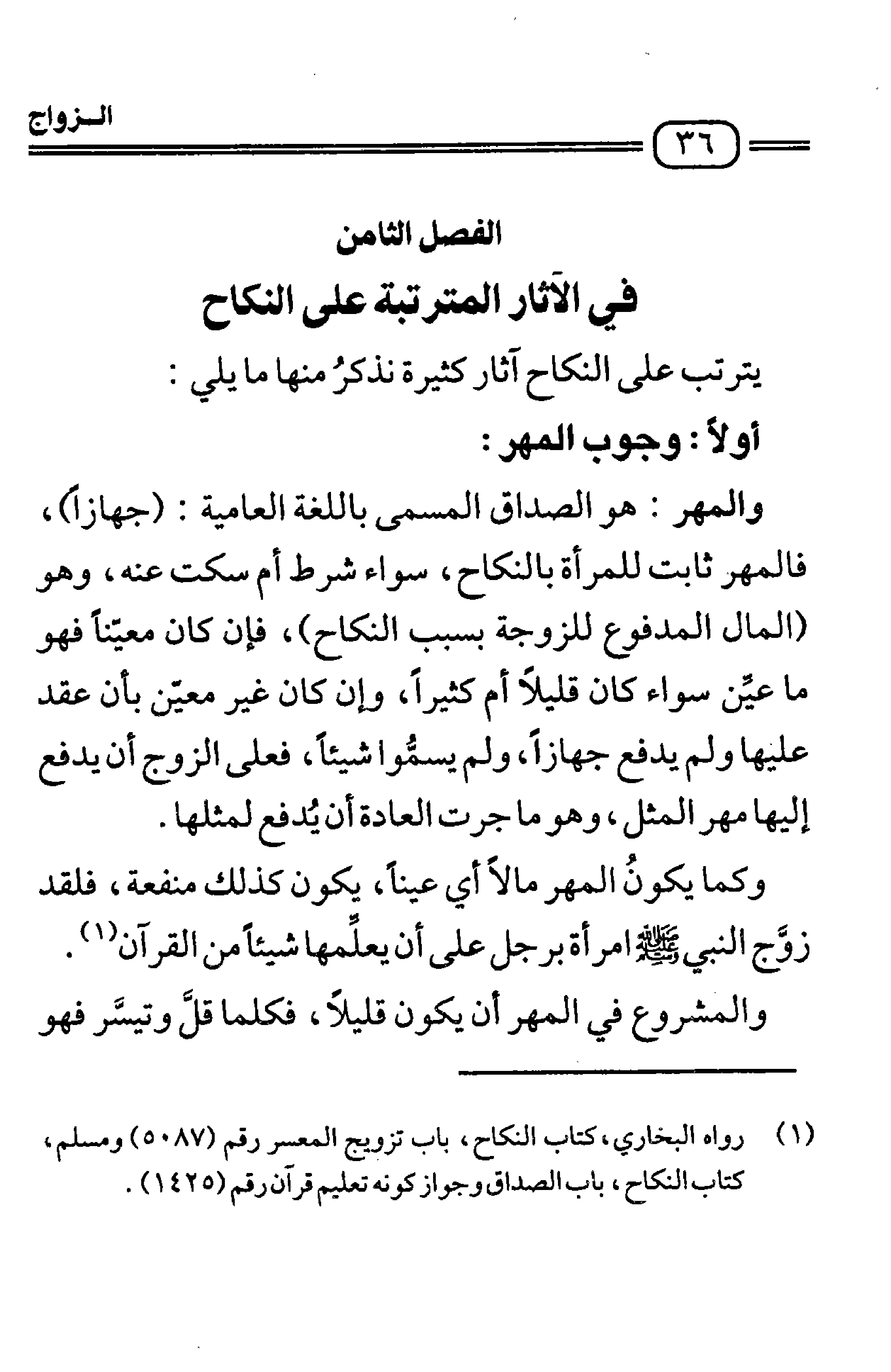 1 رواه البخاري كتاب النكاح باب تزويج المعسر رقم" 5087" ومسلم كتاب النكاح باب الصداق وجواز كونه تعليم قرآن رقم "1425"
