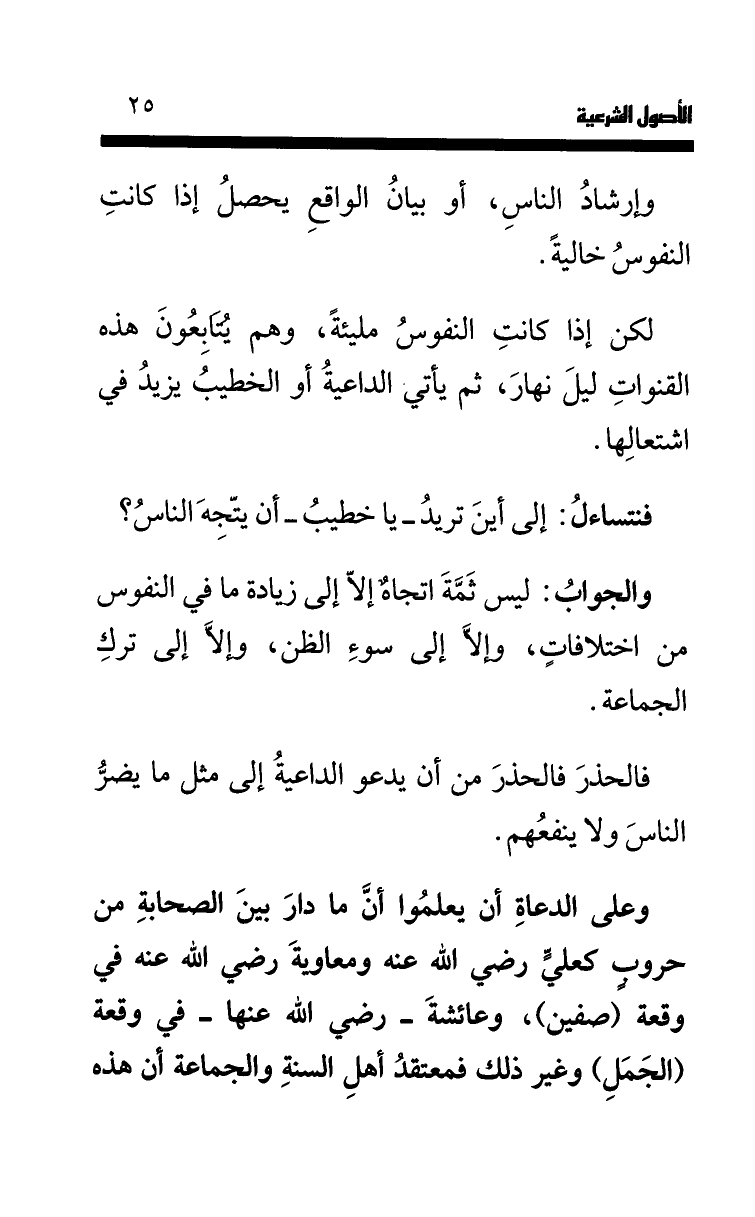 وعلى الدعاة أن يعلموا أن ما دار بين الصحابة من حروب كعلي رضي الله عنه ومعاوية رضي الله عنه في وقعة (صفين) ، وعائشة - رضي الله عنها - في وقعة (الجمل) وغير ذلك فمعتقد أهل السنة والجماعة أن هذه