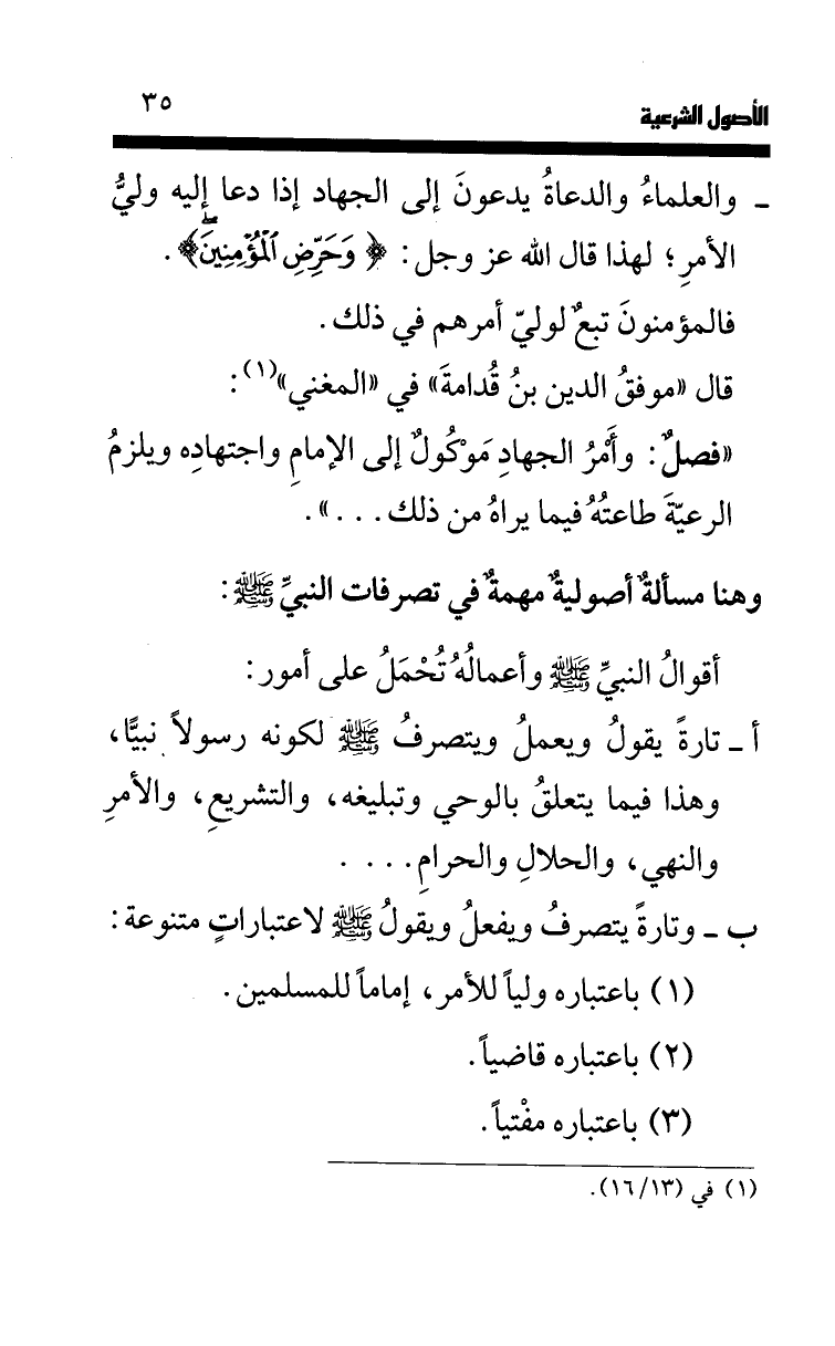 (1) باعتباره وليا للأمر، إماما للمسلمين.