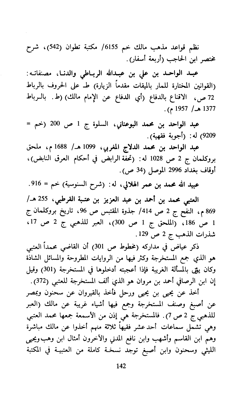 العتبى محمد بن أحمد بن عبد العزيز بن عتبة القرطبي، 255 هـ/ 869 م، النفح ج 2 ص 414/ جذوة المقتبس ص 96، تاريخ بروكلمان ج 1 ص 186، (الملحق ج 1 ص 300)، العبر للذهبي ج 2 ص 17، شذرات الذهب ج 2 ص 129.
