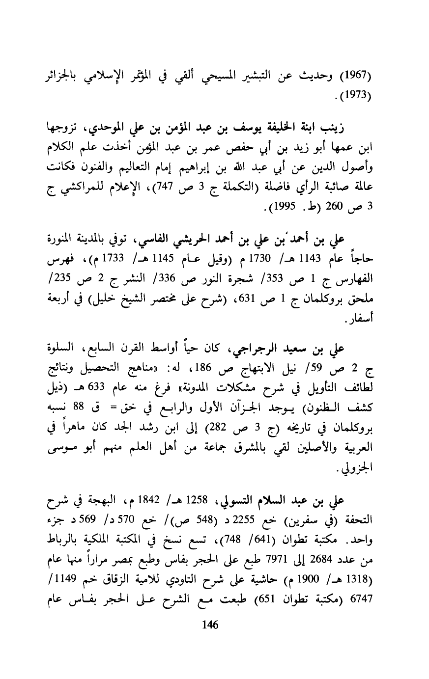 علي بن سعيد الرجراجي، كان حياً أواسط القرن السابع، السلوة ج 2 ص 59/ نيل الابتهاج ص 186، له: "مناهج التحصيل ونتائج لطائف التأويل في شرح مشكلات المدونة" فرغ منه عام 633 هـ (ذيل كشف الظنون) يوجد الجزآن الأول والرابع في خق- ق 88 نسبه بروكلمان في تاريخه (ج 3 ص 282) إلى ابن رشد الجد كان ماهراً في العربية والأصلين لقي بالمشرق جماعة من أهل العلم منهم أبو موسى الجزولي.