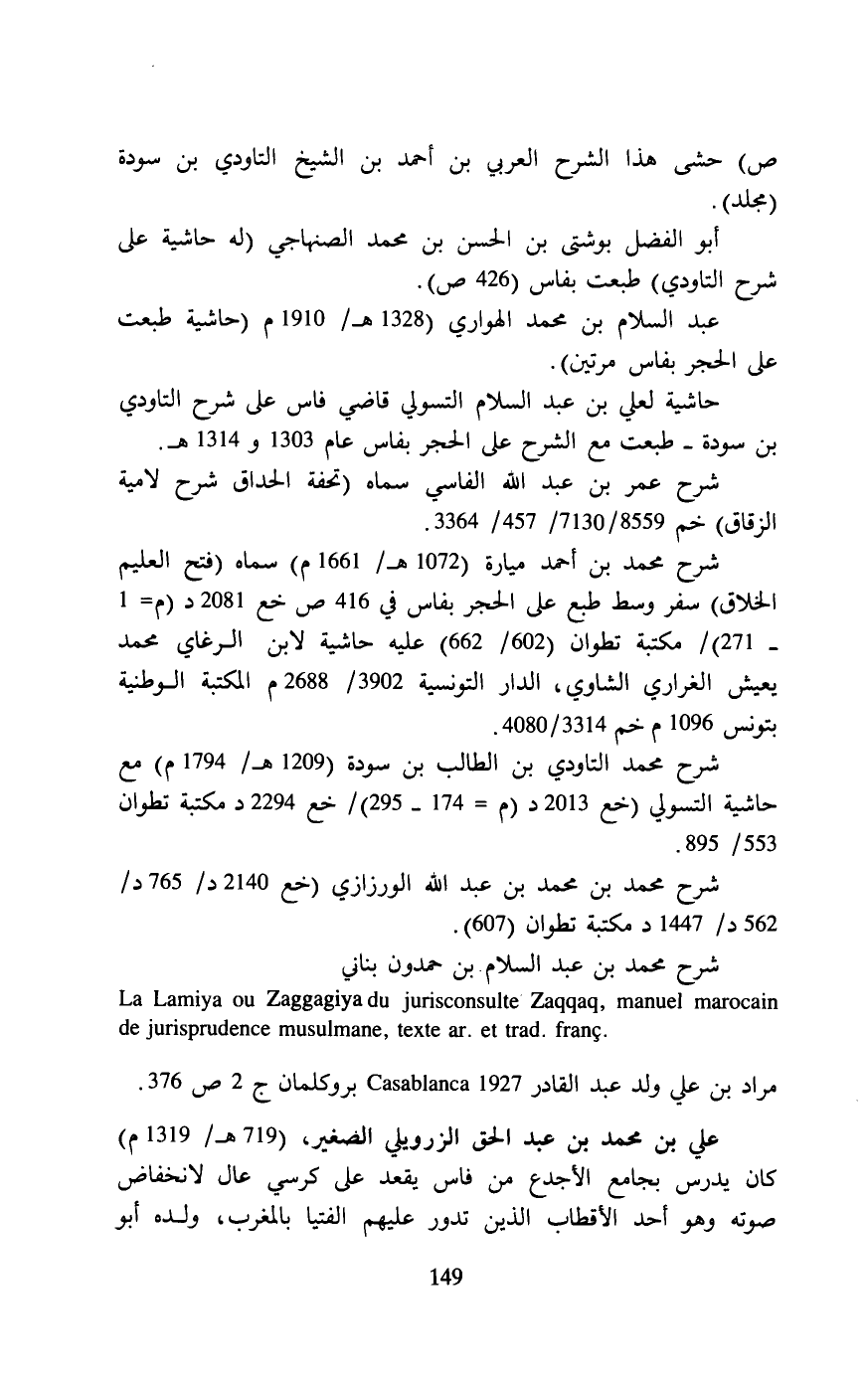 مراد بن علي ولد عبد القادر 1927 Casablanca بروكلمان ج 2 ص 376.