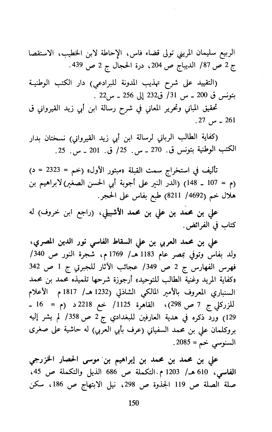 (كفاية الطالب الرباني لرسالة ابن أبي زيد القيرواني) نسختان بدار الكتب الوطنية بتونس ق. 270_س.25/ ق. 201 - س.25.
