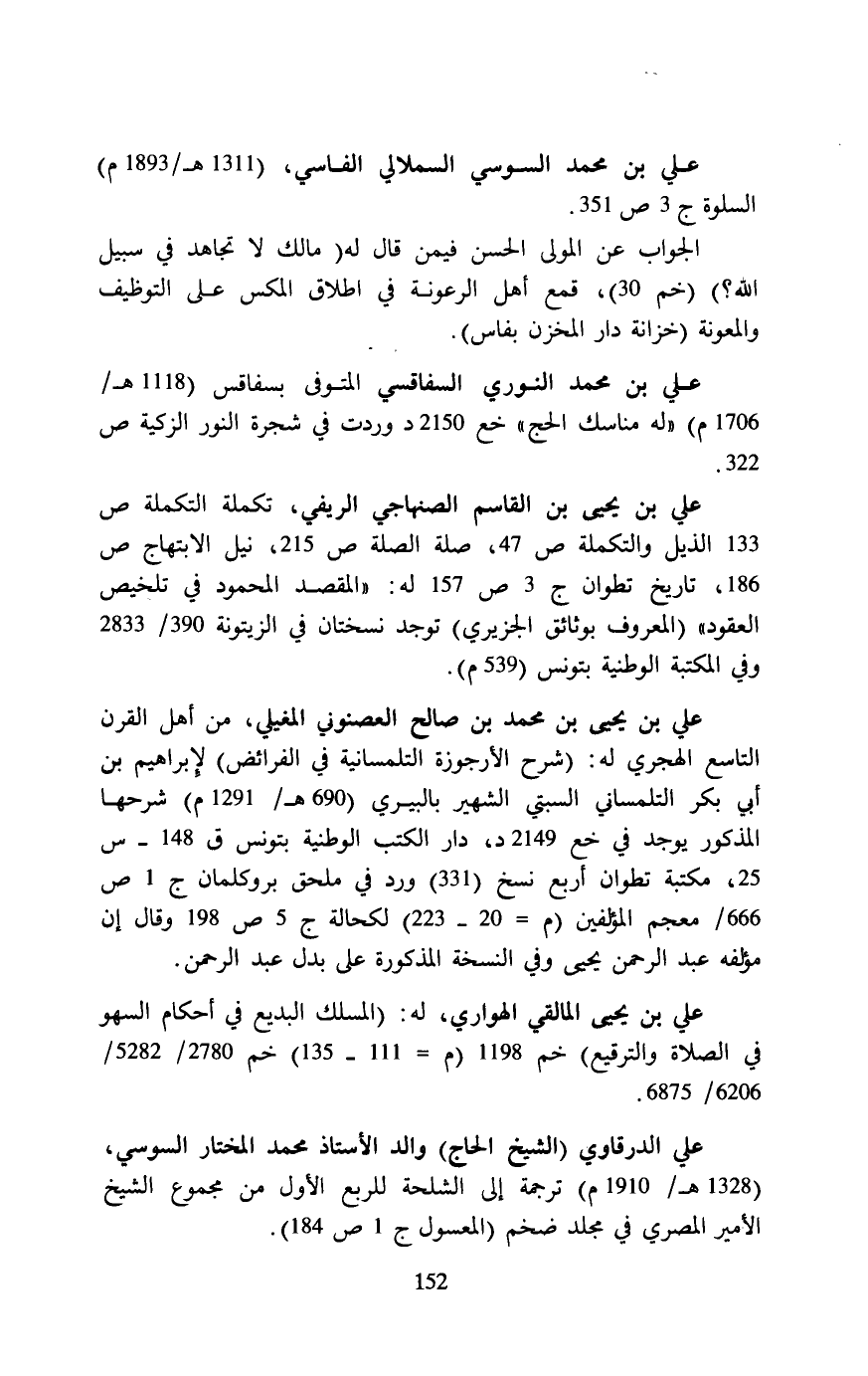 علي بن محمد السوسي السملالي الفاسي، (1311 هـ/ 1893 م) السلوة ج 3 ص 351.
