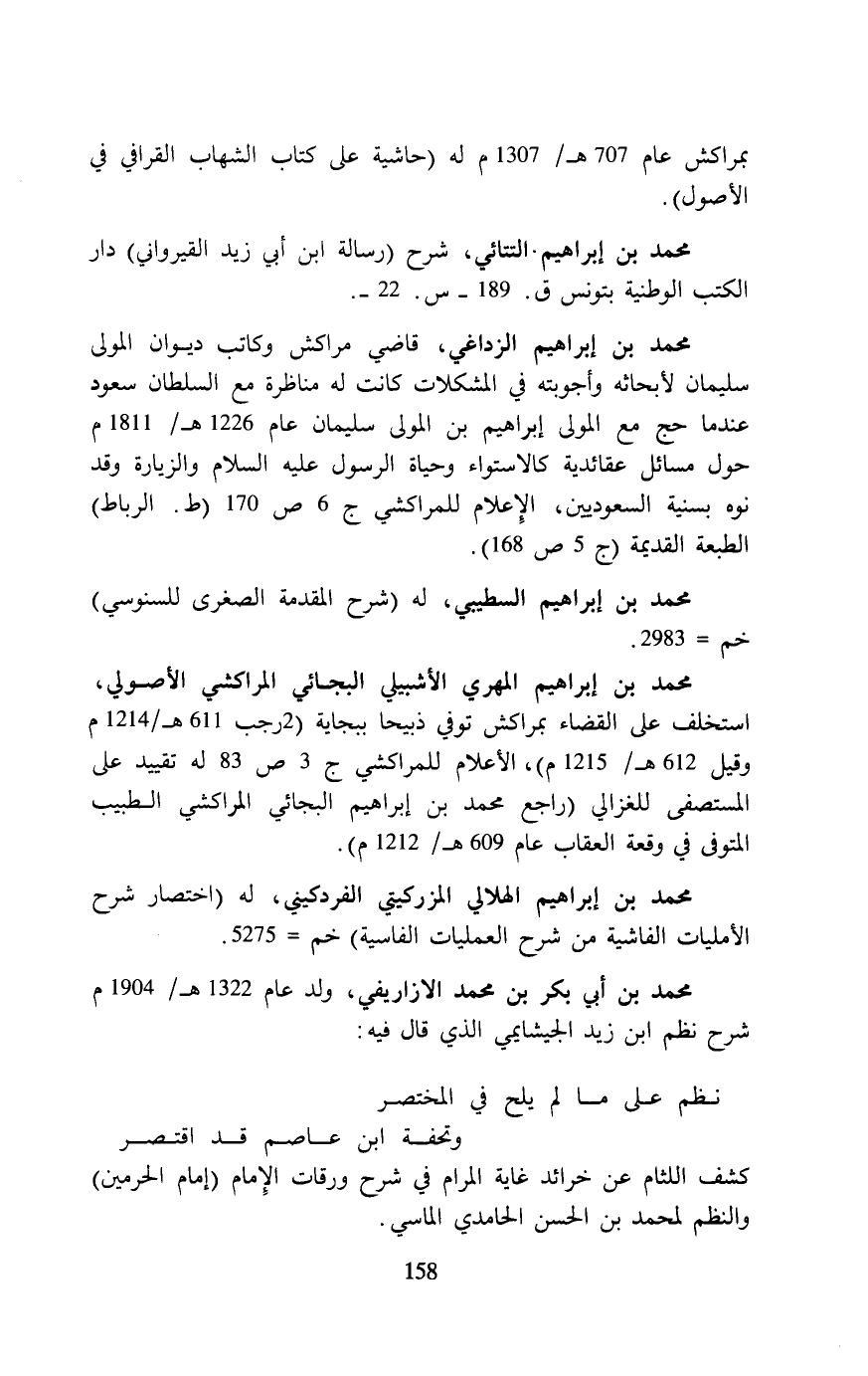 محمد بن إبراهيم الزداغي، قاضي مراكش وكاتب ديوان المولى سليمان لأبحاثه وأجوبته في المشكلات كانت له مناظرة مع السلطان سعود عندما حج مع المولى إبراهيم بن المولى سليمان عام 1226 هـ/ 1811 م حول مسائل عقائدية كالاستواء وحياة الرسول عليه السلام والزيارة وقد نوه بسنية السعوديين، الِإعلام للمراكشي ج 6 ص 170 (ط. الرباط) الطبعة القديمة (ج 5 ص 168).