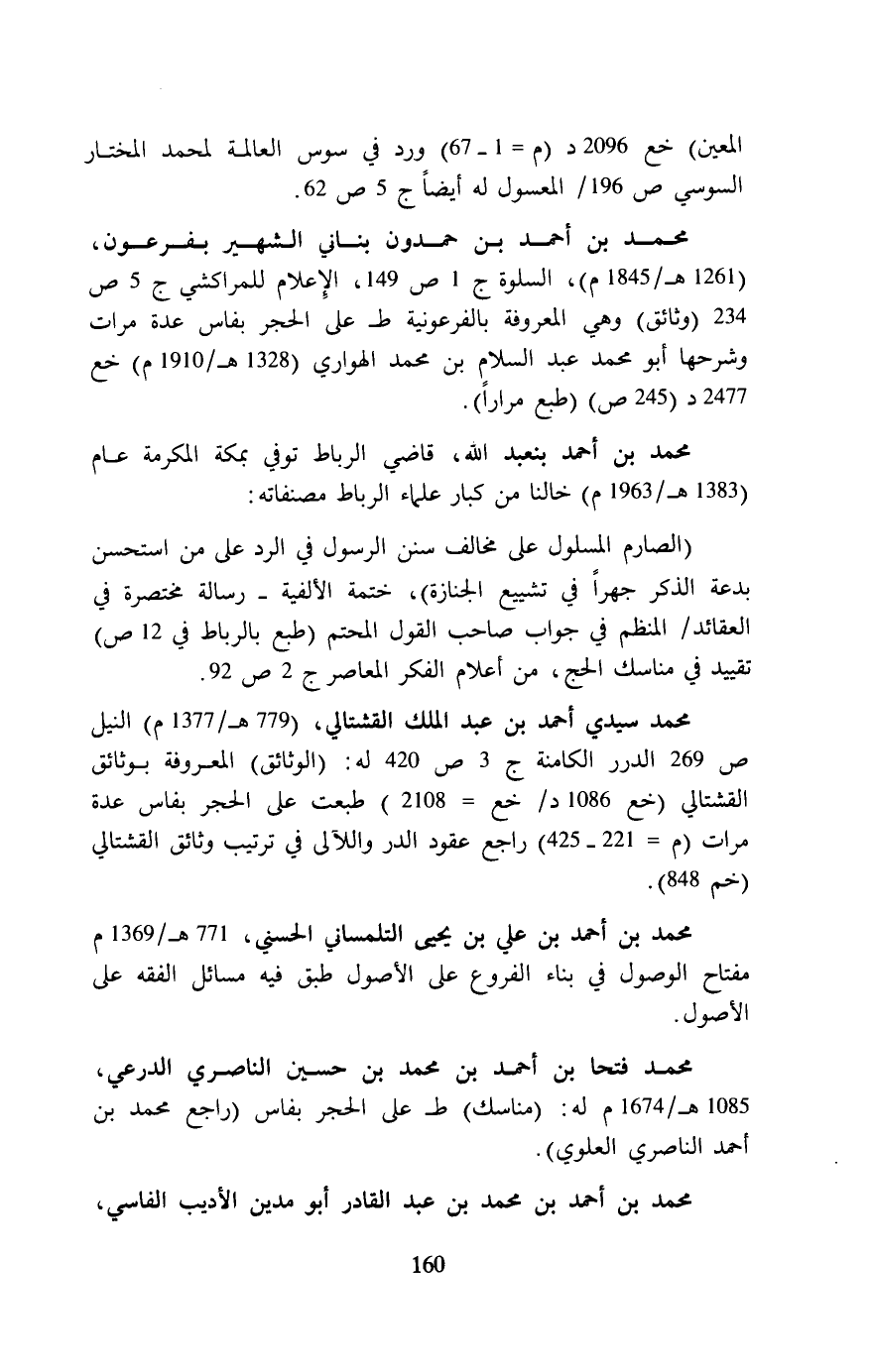 محمد فتحا بن أحمد بن محمد بن حسين الناصري الدرعي، 1085 هـ/ 1674 م له: (مناسك) ط على الحجر بفاس (راجع محمد بن أحمد الناصري العلوي).