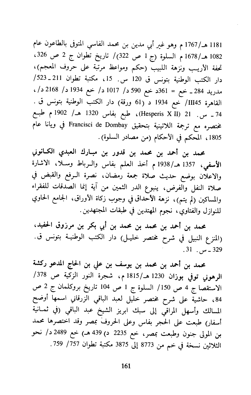 74 - س. 21 (Hesperis X II), طبع بفاس 1320 هـ/ـ 1902 م طبع مختصره مع ترجمة اللاتينية بتحقيق Francisci de Dombay في ويانا عام 1805، المحكم في الأحكام (من مصادر السلوة).