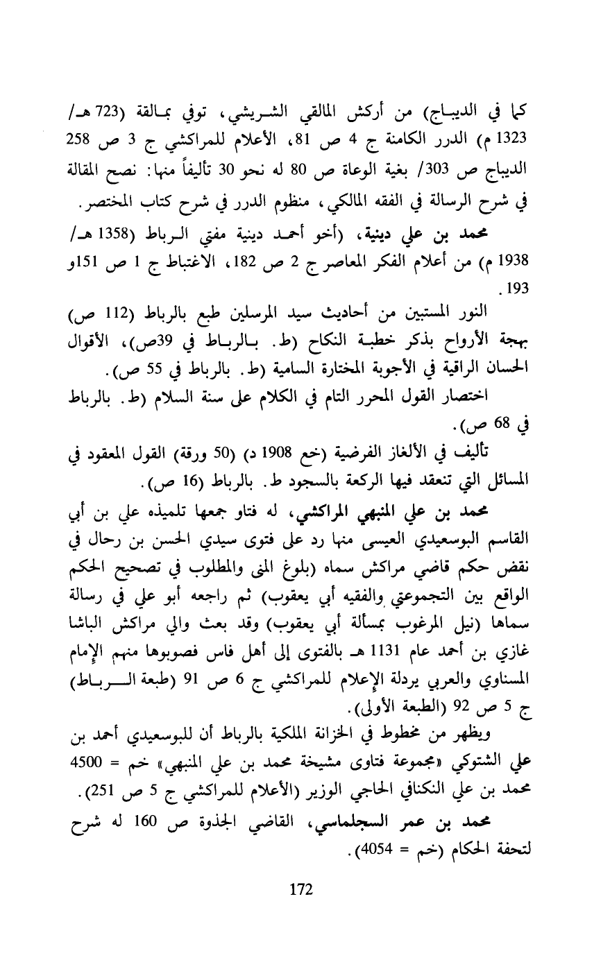 محمد بن عمر السجلماسي، القاضي الجذوة ص 160 له شرح لتحفة الحكام (خم = 4054).