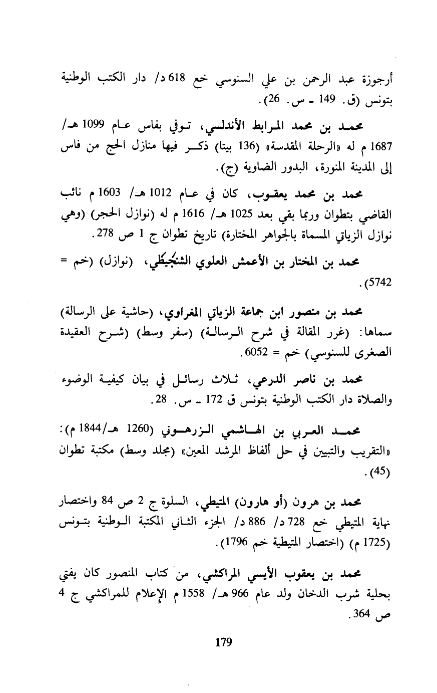 محمد بن ناصر الدرعي، ثلاث رسائل في بيان كيفية الوضوء والصلاة دار الكتب الوطنية بتونس ق 172 - س. 28.