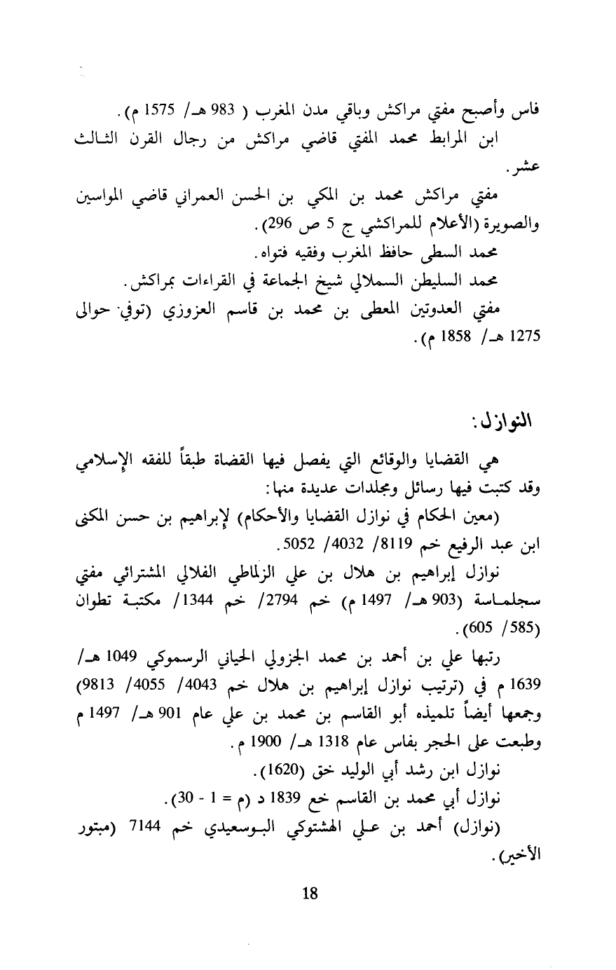 (معين الحكام في نوازل القضايا والأحكام) لإبراهيم بن حسن المكنى ابن عبد الرفيع خم 8119/ 4032/ 5052.