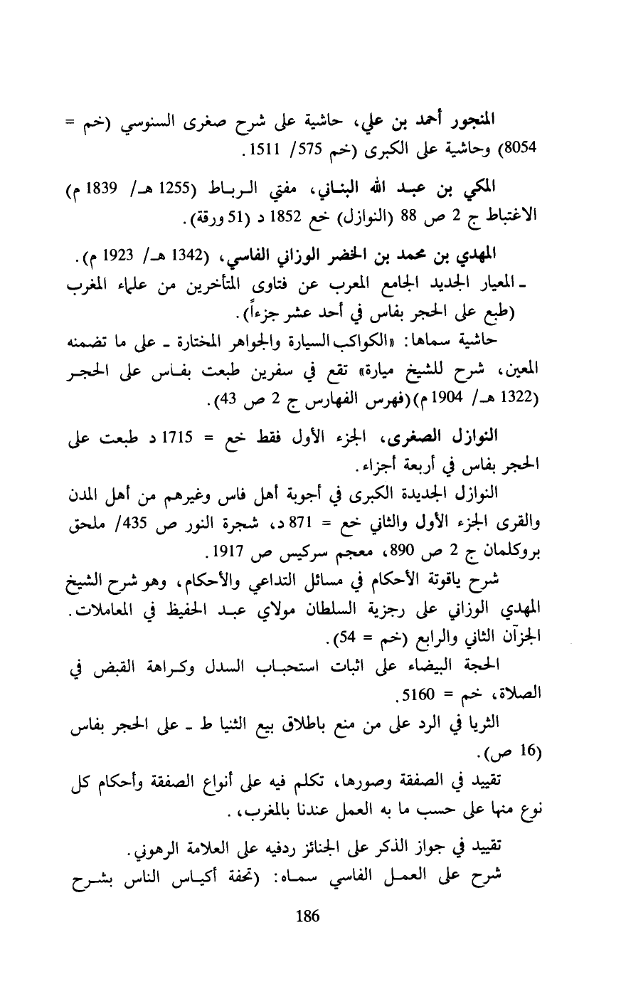 المكي بن عبد الله البناني، مفتي الرباط (1255 هـ/1839 م) الاغتباط ج 2 ص 88 (النوازل) خع 1852 د (51 ورقة).