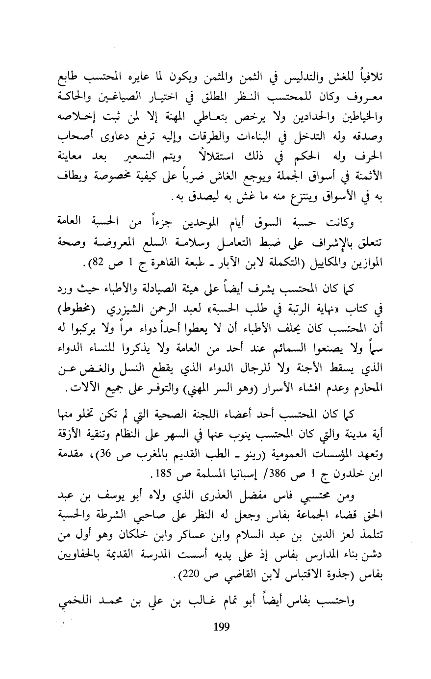كما كان المحتسب أحد أعضاء اللجنة الصحية التي لم تكن تخلو منها أية مدينة والتي كان المحتسب ينوب عنها في السهر على النظام وتنقية الأزقة وتعهد المؤسسات العمومية (رينو- الطب القديم بالمغرب ص 36)، مقدمة ابن خلدون ج 1 ص 386/ إسبانيا المسلمة ص 185.