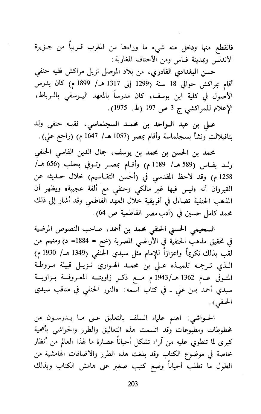 فانقطع منها ودخل منه شيء ما وراءها من المغرب قريبًا من جزيرة الأندلس وبمدينة فاس ومن الأحناف المغاربة:
