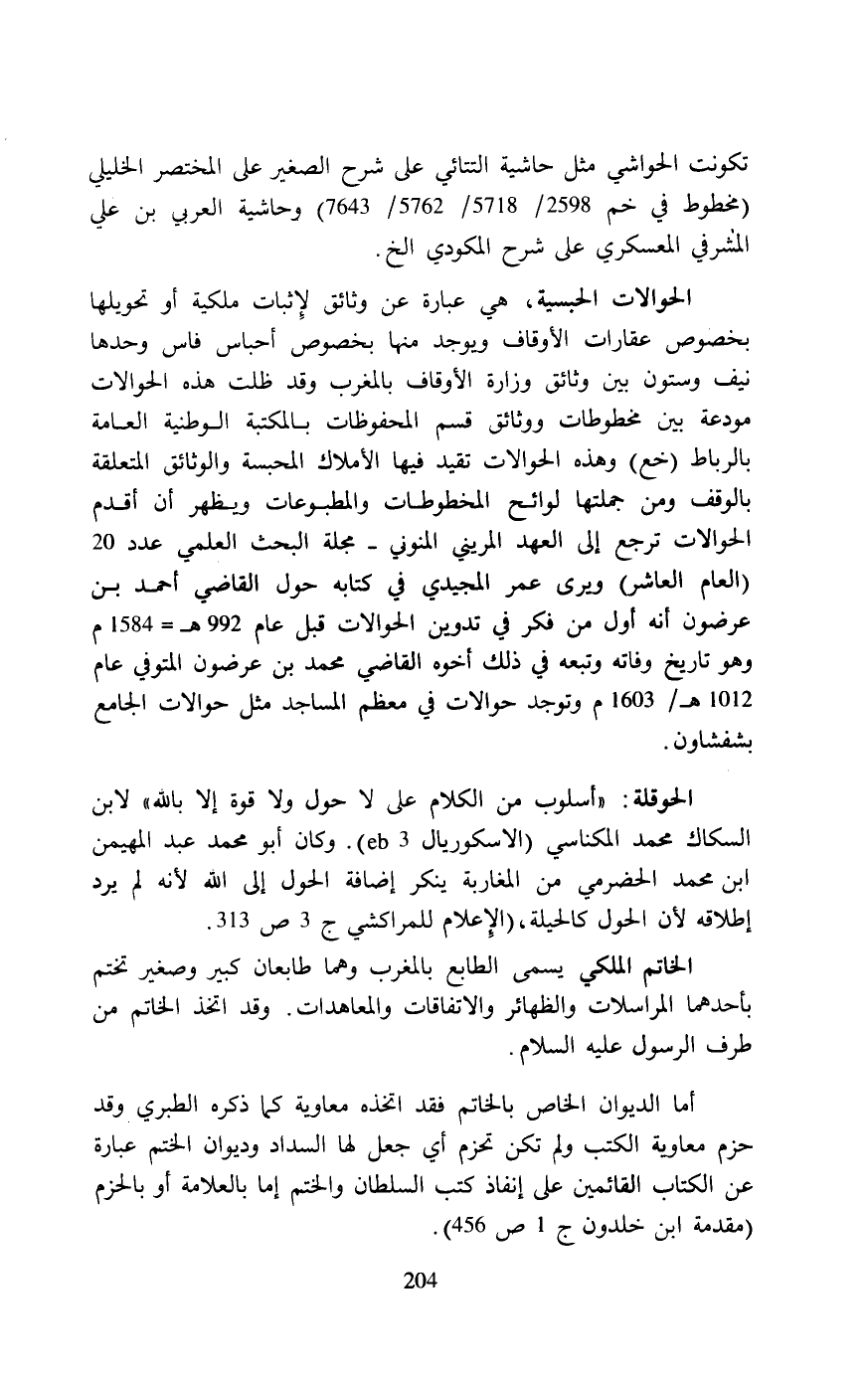 تكونت الحواشي مثل حاشية التتائي على شرح الصغير على المختصر الخليلي (مخطوط في خم 2598/ 5718/ 5762/ 7643) وحاشية العربي بن علي المشرفي المعسكرىِ على شرح المكودي الخ.