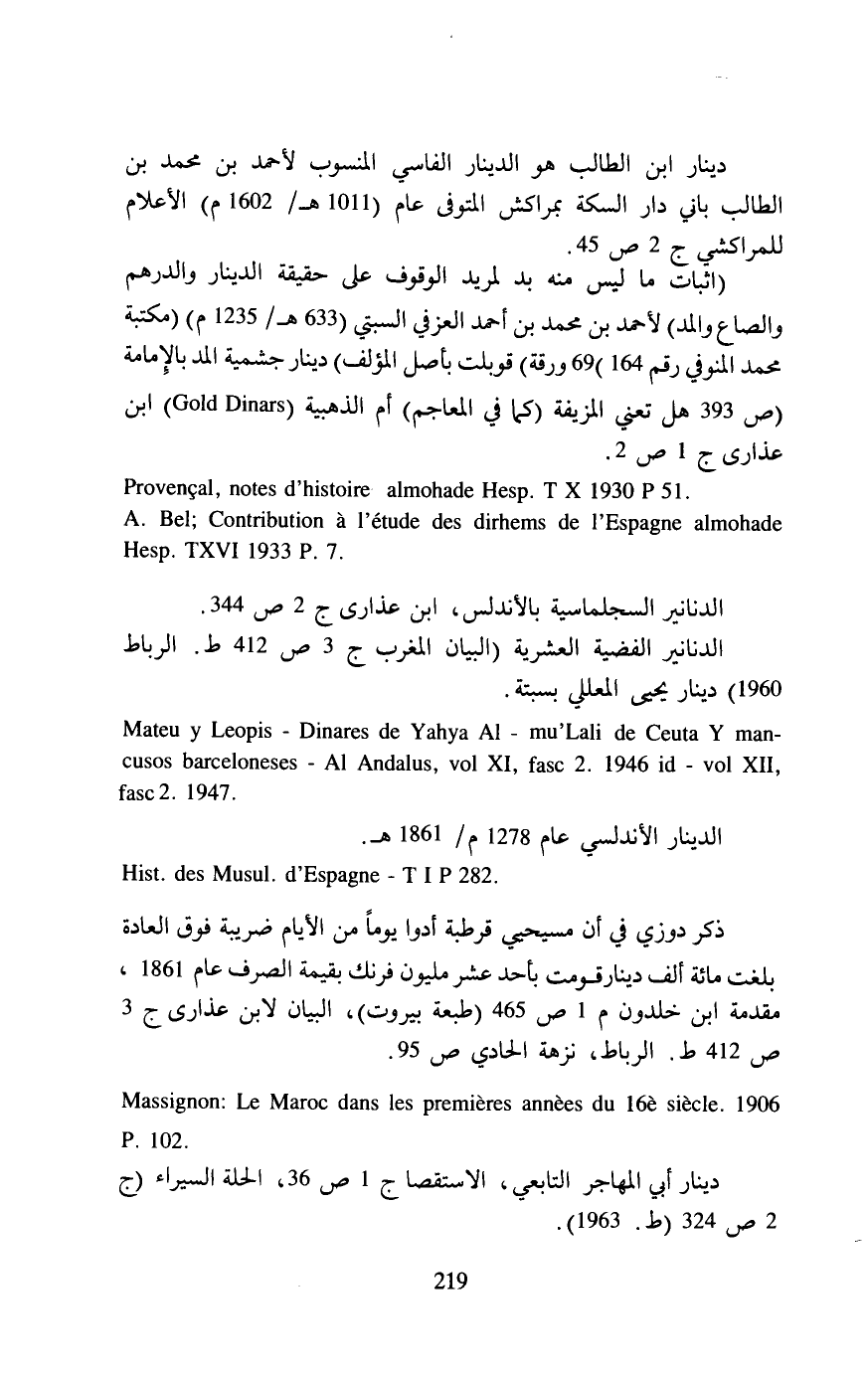 الدنانير السجلماسية بالأندلس، ابن عذارى ج 2 ص 344.