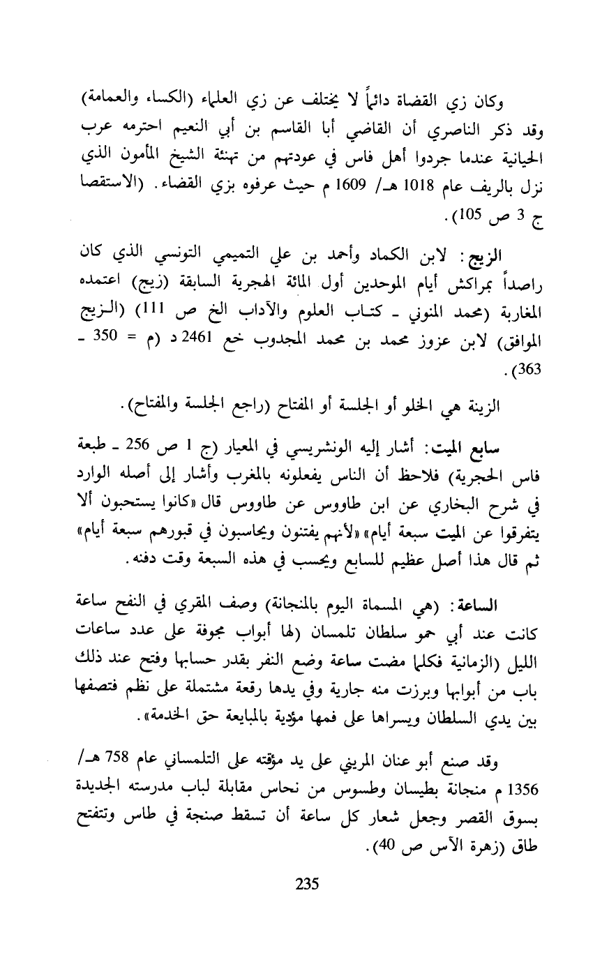 الزيج: لابن الكمال وأحمد بن علي التميمي التونسي الذي كان راصداً بمراكش أيام الموحدين أول المائة الهجرية السابقة (زيج) اعتمده المغاربة (محمَّد المنوني -كتاب العلوم والآداب الخ ص 111) (الزيج الموافق) لابن عزوز محمَّد بن محمَّد المجدوب خع 2461 د (م = 350 - 363).