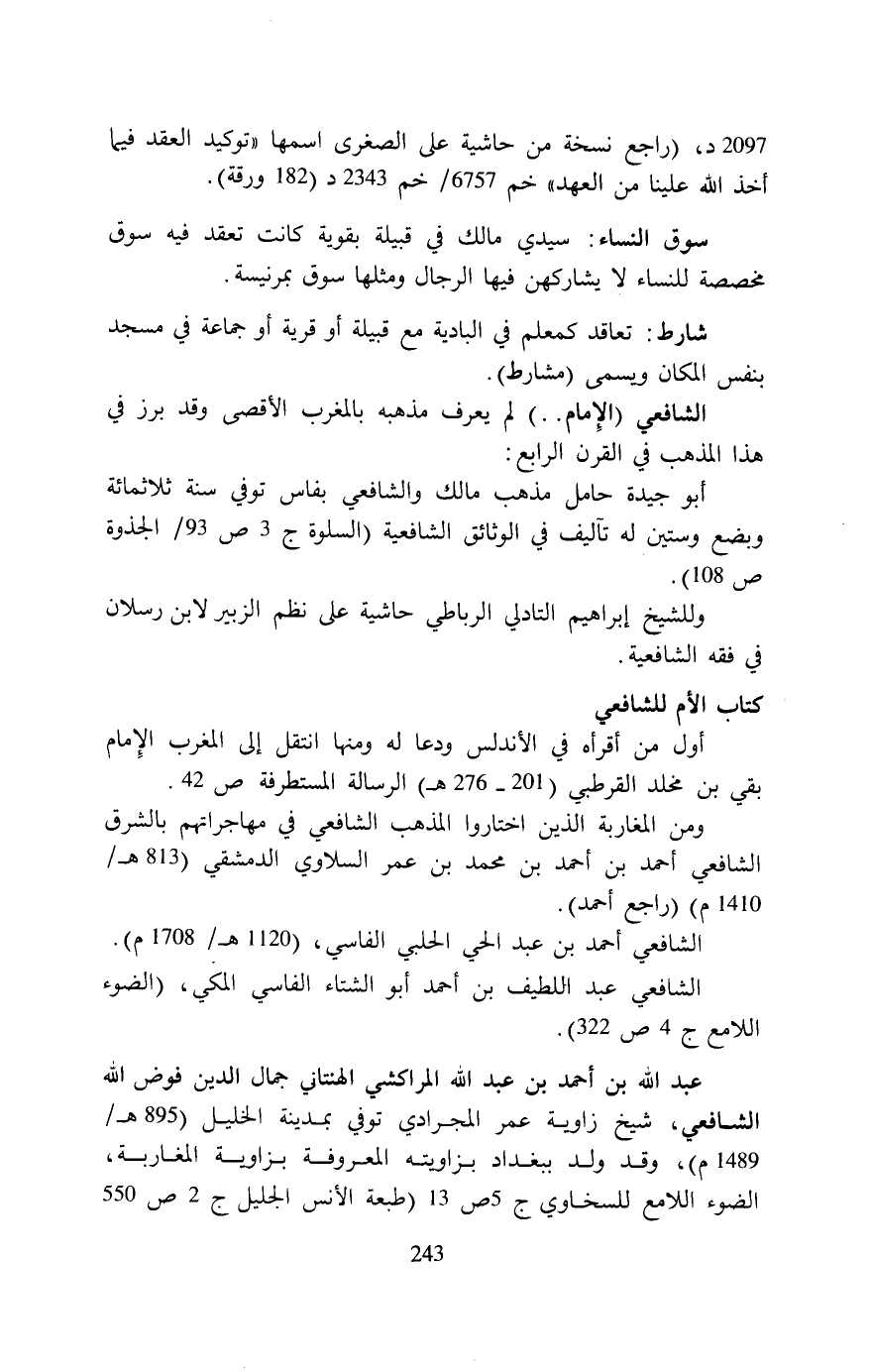 الشالْعي (الإِمام .. ) لم يعرف مذهبه بالمغرب الأقصى وقد برز في هذا المذهب في القرن الرابع: