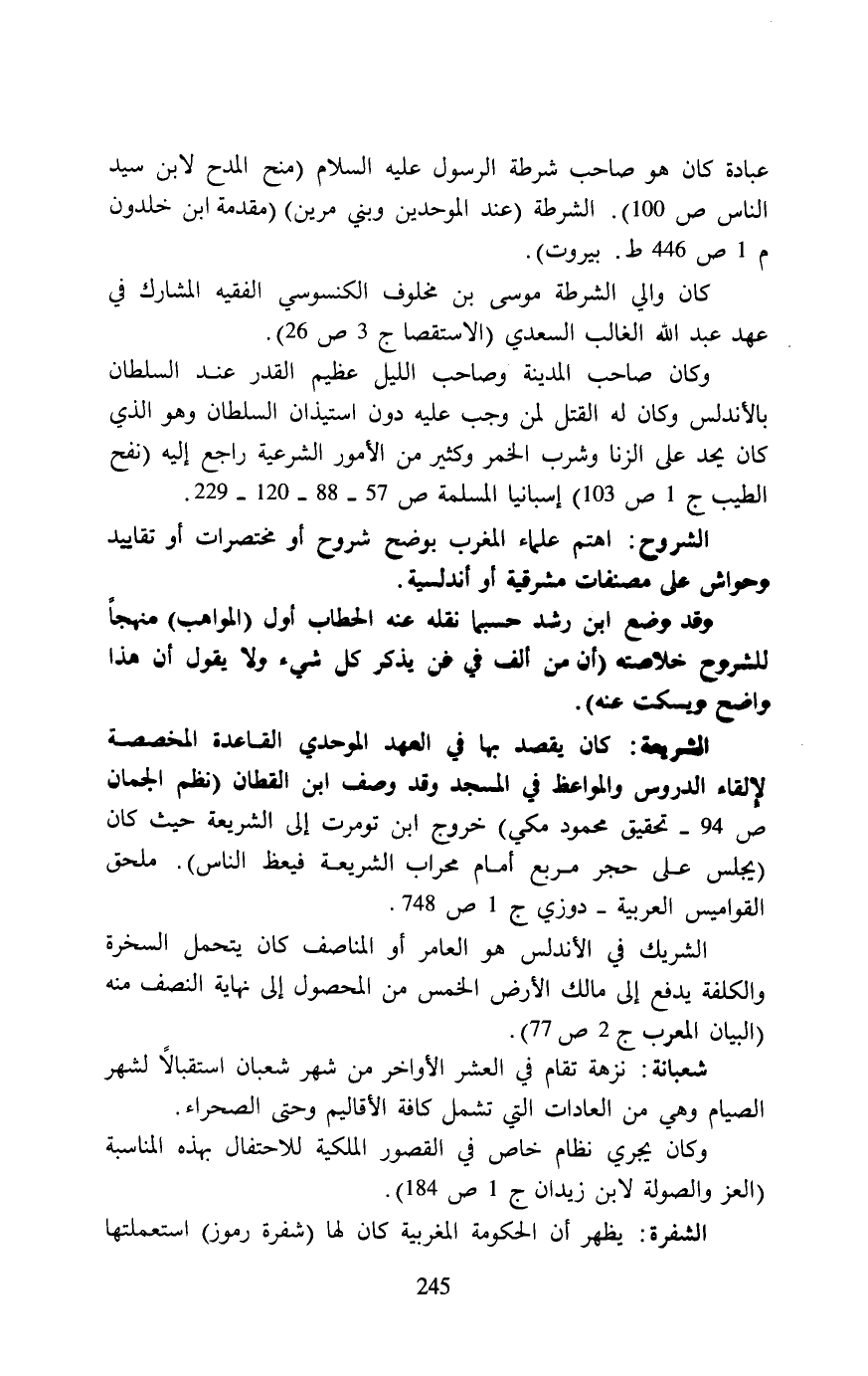 وكان صاحب المدينة وصاحب الليل عظيم القدر عند السلطان بالأندلس وكان له القتل لمن وجب عليه دون استيذان السلطان وهو الذي كان يحد على الزنا وشرب الخمر وكثير من الأمور الشرعية راجع إليه (نفح الطيب ج 1 ص 103) إسبانيا المسلمة ص 57 - 88 - 120 - 229.