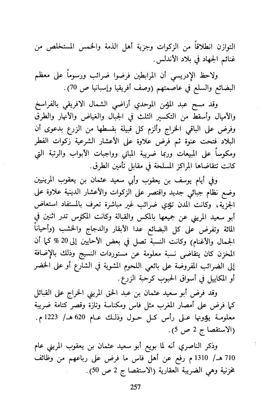 وذكر الناصري أنه لما بويع أبو سعيد عثمان بن يعقوب المريني عام 710 هـ / 1310 م رفع عن أهل فاس ما فرض على رباعهم من وظائف مخزنية وهي الضريبة العقارية (الاستقصا ج 2 ص 50).