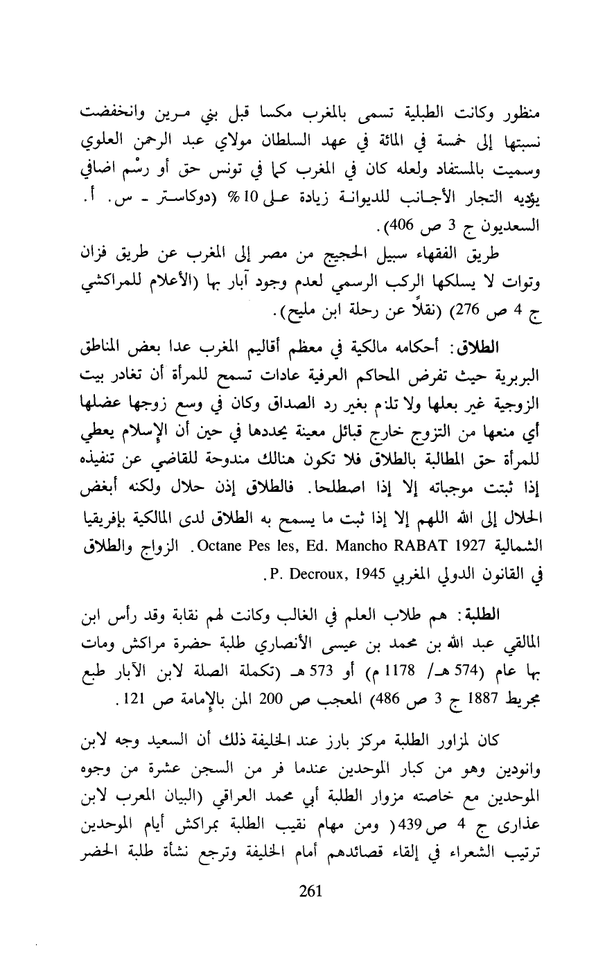 الشمالية 1927 Octane Pes les, Ed. Mancho RABAT . الزواج والطلاق في القانون الدولي المغربي 1945 , P. Decroux .