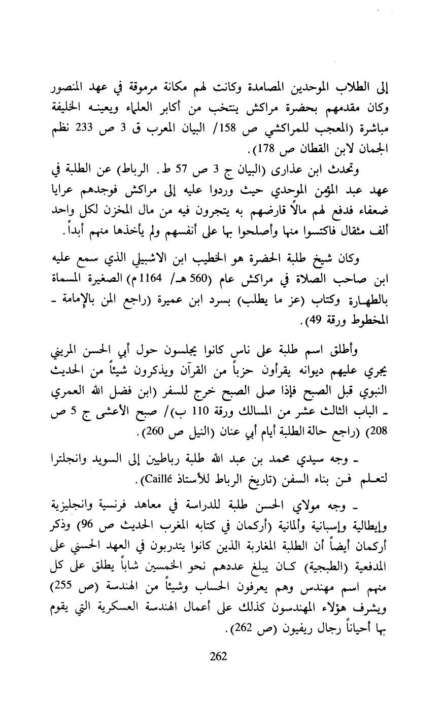 إلى الطلاب الموحدين المصامدة وكانت لهم مكانة مرموقة في عهد المنصور وكان مقدمهم بحضرة مراكش ينتخب من أكابر العلماء ويعينه الخليفة مباشرة (المعجب للمراكشي ص 158 / البيان المعرب ق 3 ص 233 نظم الجمان لابن القطان ص 178).