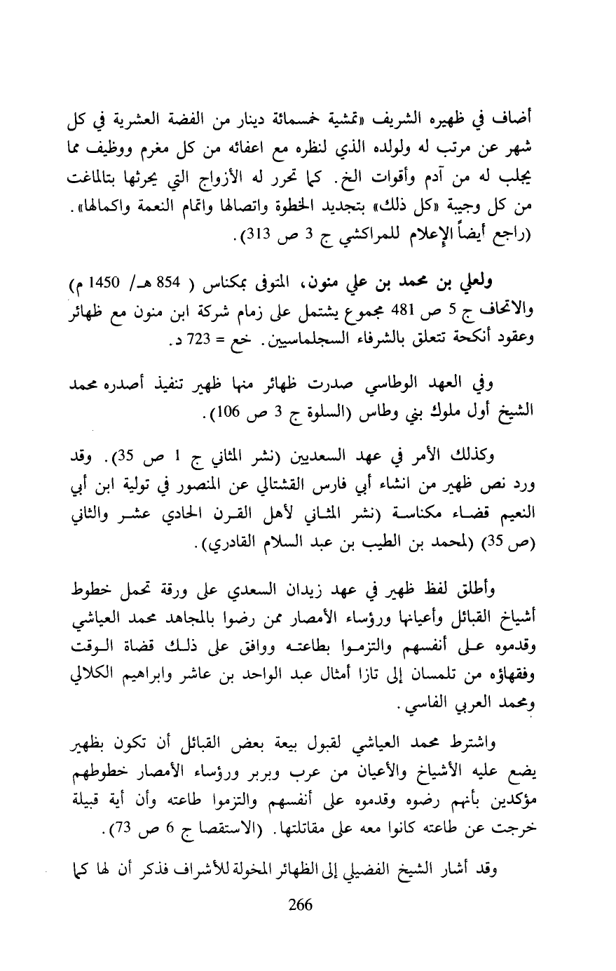 وقد أشار الشيخ الفضيلي إلى الظهائر المخولة للأشراف فذكر أن لها كما