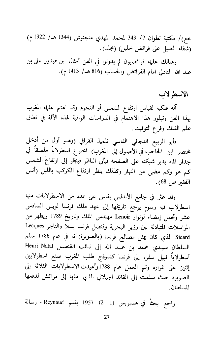 راجع بحثاً في هسبريس (1 - 2) 1957 بقلم Reynaud - رسالة