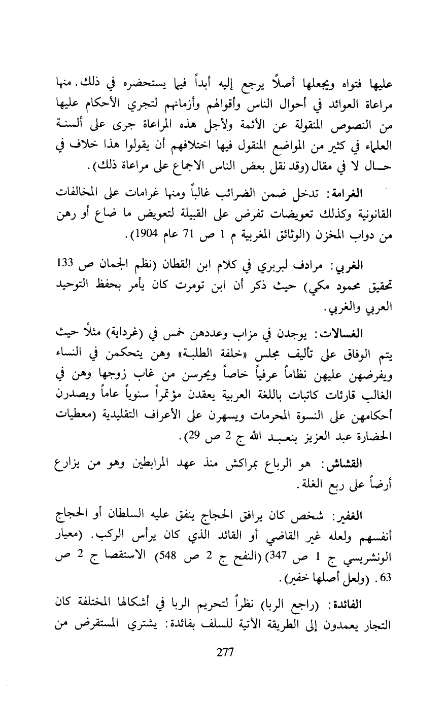 الغرامة: تدخل ضمن الضرائب غالبًا ومنها غرامات على المخالفات القانونية وكذلك تعويضات تفرض على القبيلة لتعويض ما ضاع أو رهن من دواب المخزن (الوثائق المغربية م 1 ص 71 عام 1904).