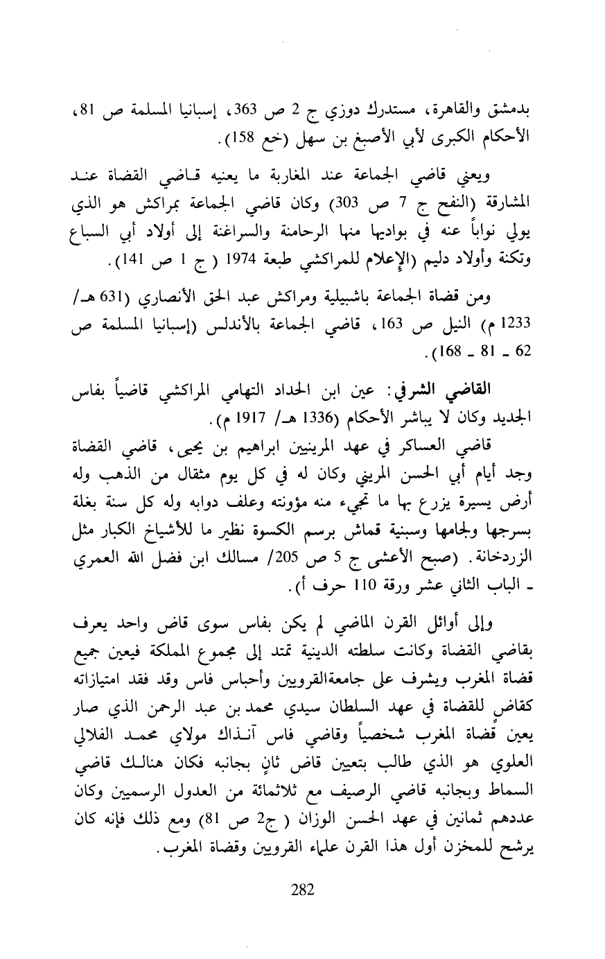ومن قضاة الجماعة باشبيلية ومراكش عبد الحق الأنصاري (631 هـ/ 1233 م) النيل ص 163، قاضي الجماعة بالأندلس (إسبانيا المسلمة ص 62 - 81 - 168).
