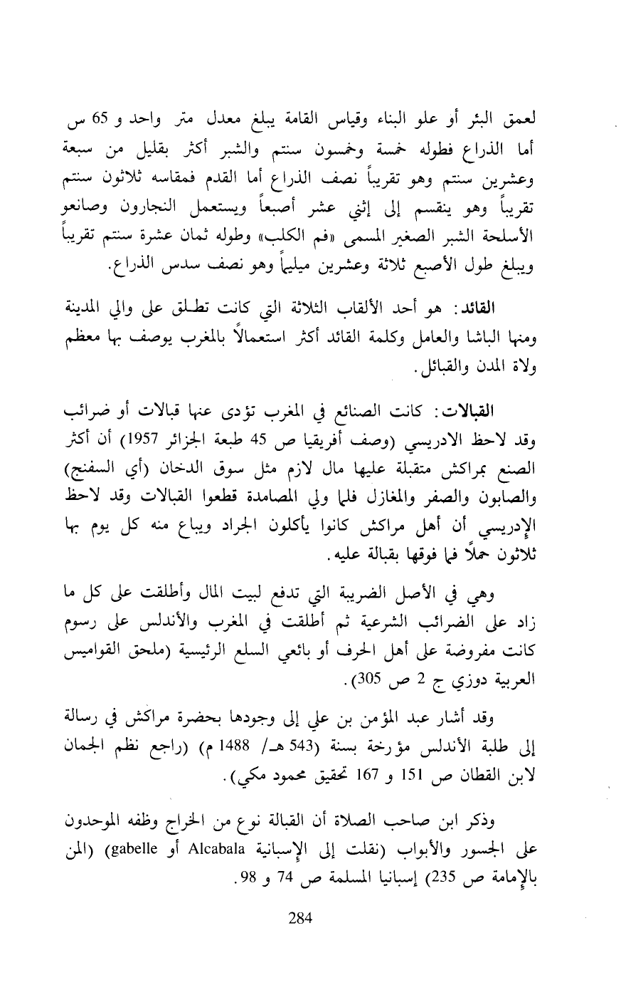 وذكر ابن صاحب الصلاة أن القبالة نوع من الخراج وظفه الموحدون على الجسور والأبواب (نقلت إلى الِإسبانية Alcabala أو gabelle) (المن بالِإمامة ص 235) إسبانيا المسلمة ص 74 و 98.