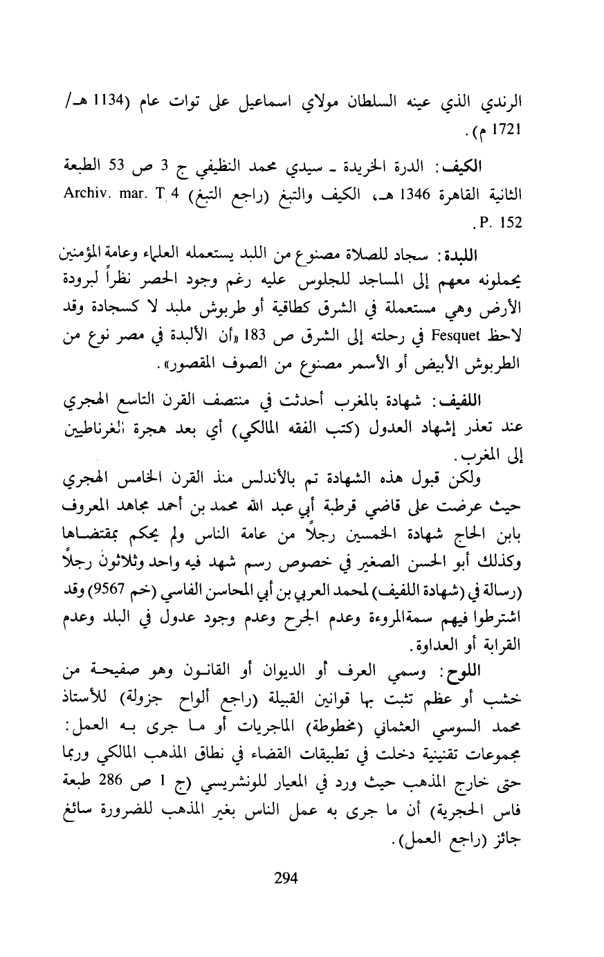 اللوح: وسمي العرف أو الديوان أو القانون وهو صفيحة من خشب أو عظم تثبت بها قوانين القبيلة (راجع ألواح جزولة) للأستاذ
